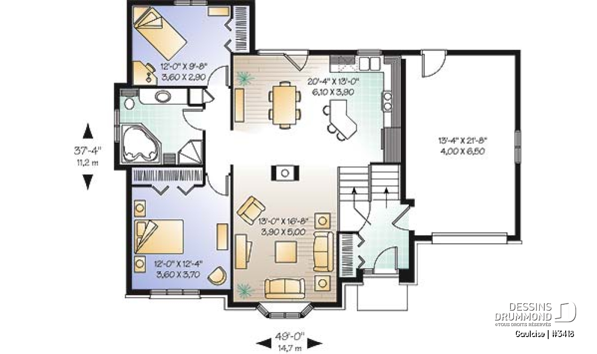 | Largeur | 49'0" | Profondeur | 37'4" |