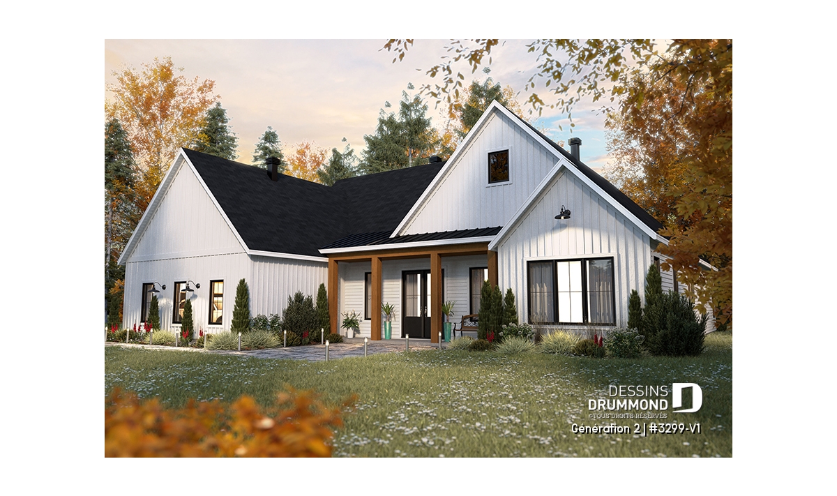 Maison bi-génération de style Farmhouse avec garage double.