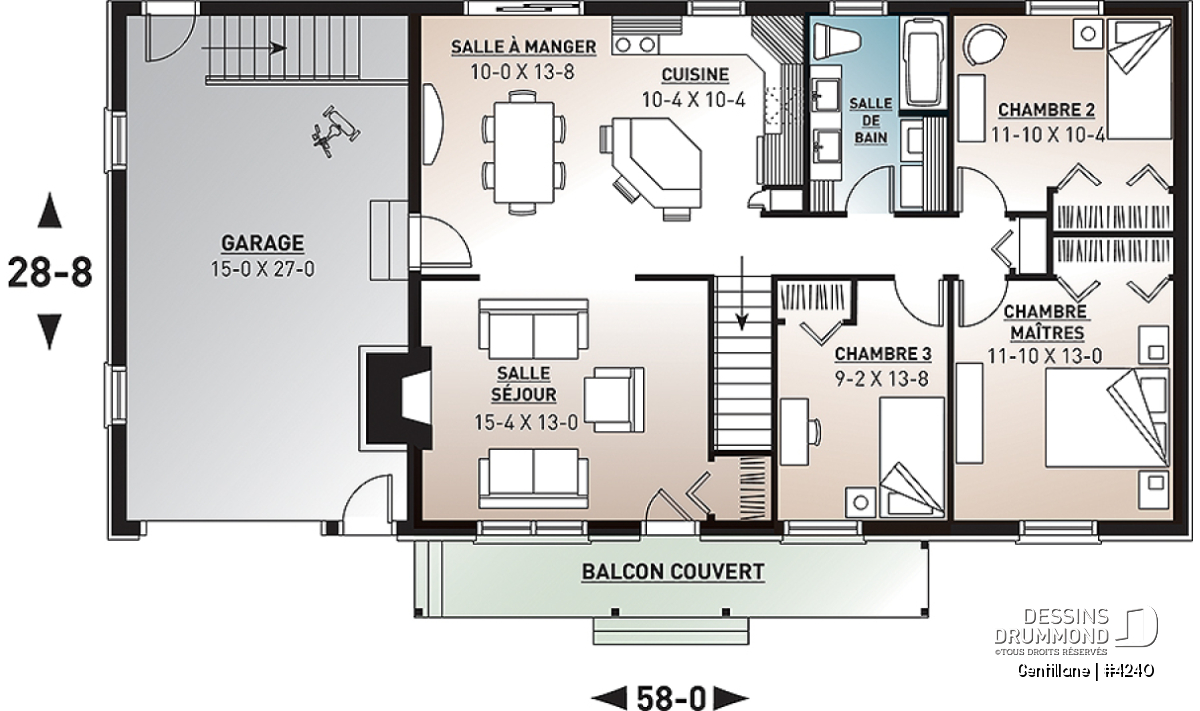 Plan de plain-pied style ranch à 3 chambres sur le rez-de-chaussée
