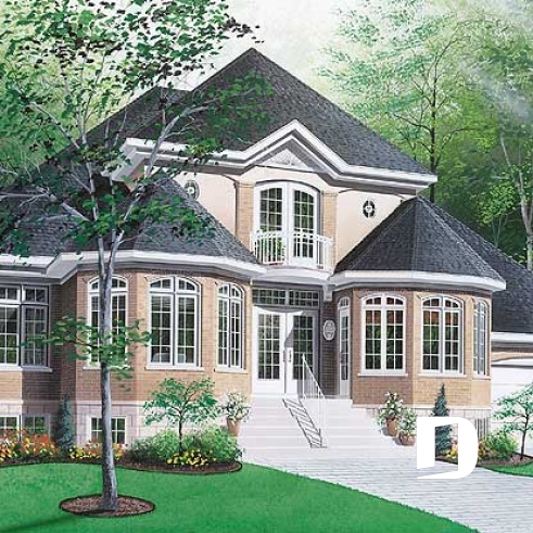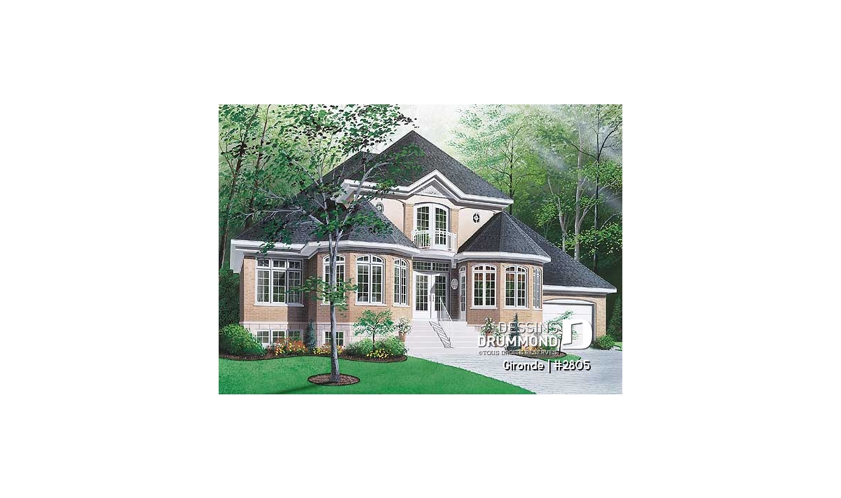 Plan de maison classique, 3+ chambres, plafond 9' au rdc, balcon à la suite des maîtres, garage