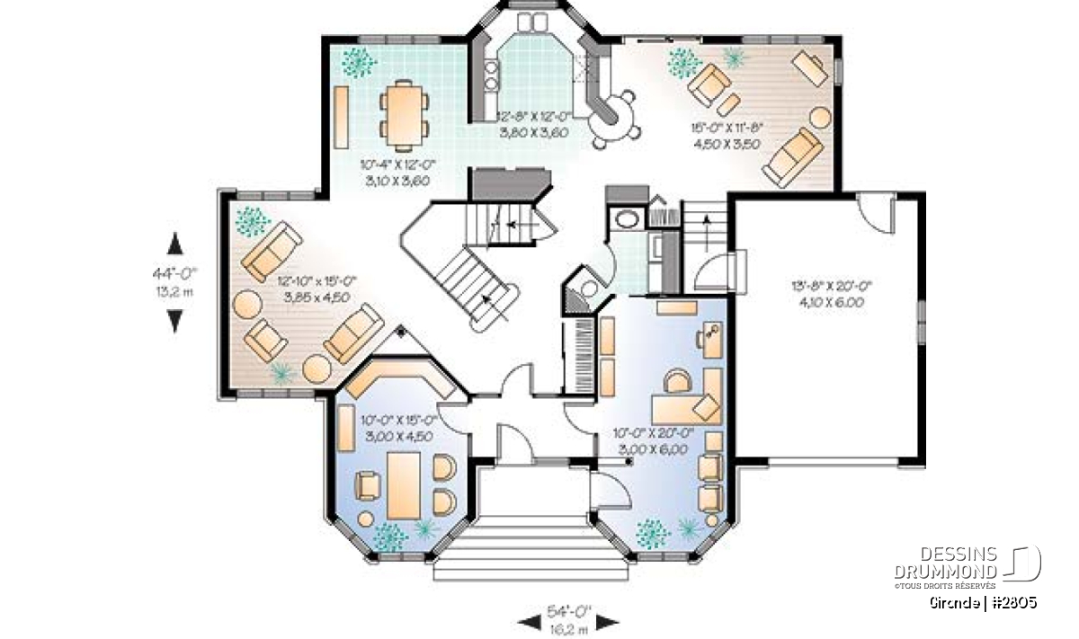 Largeur 54'0" Profondeur 44'0"
