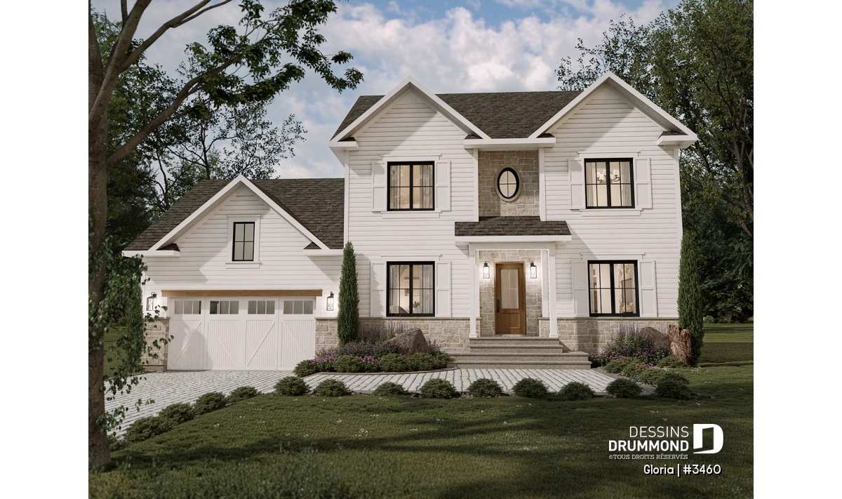 Sous-sol aménageable - Plan de maison spacieuse, 4+ chambres, grand garage, bureau, suite des maître, sous-sol aménagé (optionnel) - Gloria