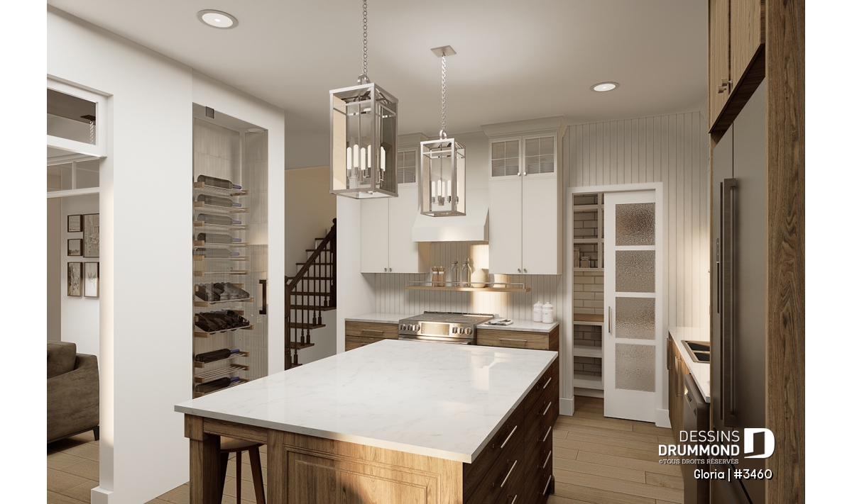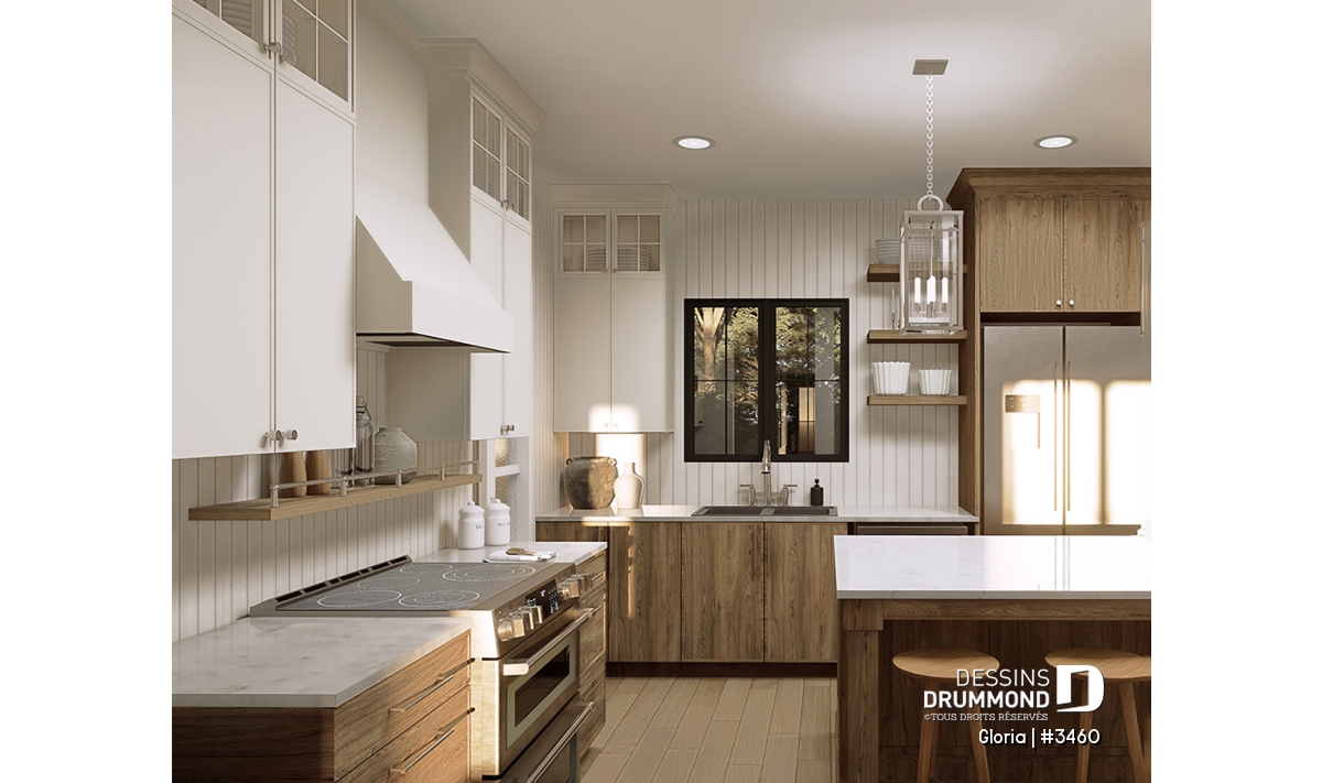 Bureau / Salle étude, Suite des maîtres à l'étage, Walk-in ch. maîtres, Salle de lavage au rez-de-chaussée, Ilôt, Lavabo double, Suite d'invités, Tablettes, Vestiaire, Plafond à plus de 8', Aire ouverte, Garde-manger, Suite des maîtres à l'étage, Bain et douche séparés
