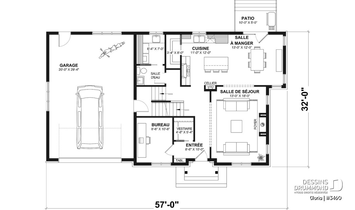 Largeur 57'0" Profondeur 32'0"