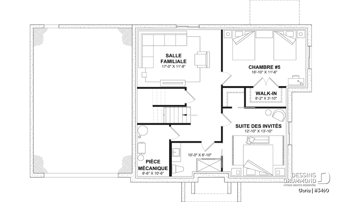 *Si vous souhaitez acheter le plan du sous-sol aménagé, veuillez sélectionner cette option dans le panier d'achat, dans la section "Sélectionner votre fondation".