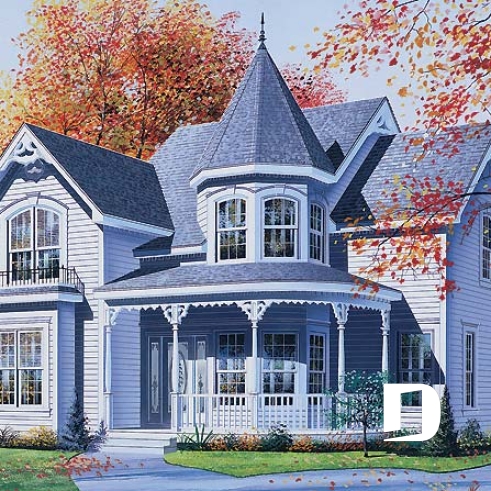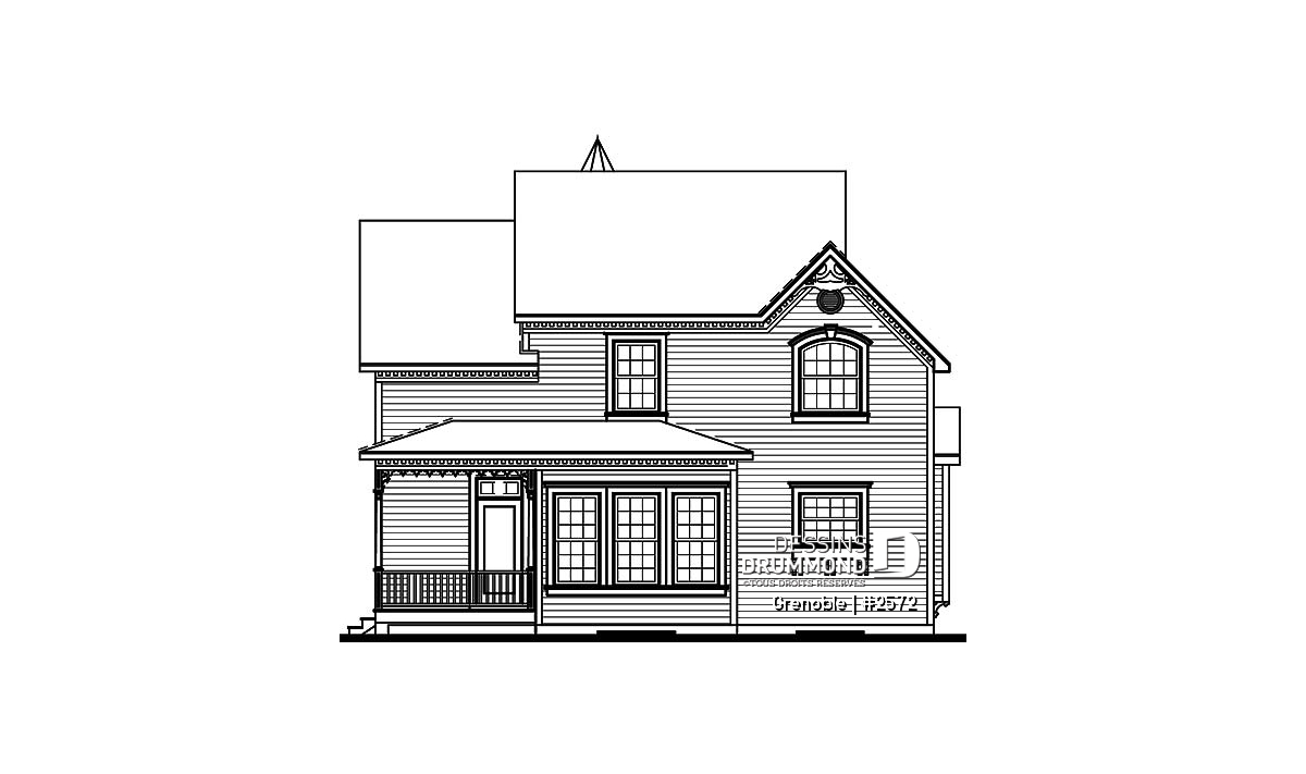 Tout à fait invitant, ce cottage emprunte sa tourelle et ses moulures en dentelles à l’architecture victorienne. Des volumes en saillies alimentent celle-ci tout comme ses nombreuses ouvertures réparties sur les quatre façades et les galeries couvertes que l’on retrouve à l’avant et à l’arrière.