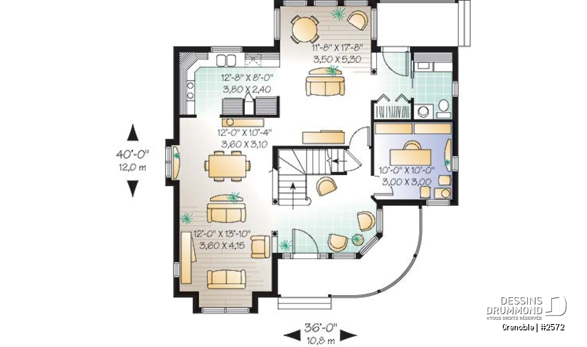 On remarque en plus sur ce plancher, un espace buanderie près de l’entrée de service arrière et une cuisine en L avec îlot rangement fort pratique.