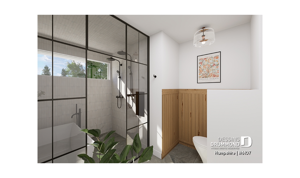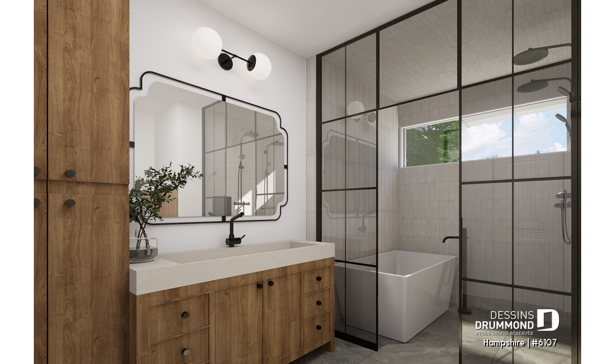 Salle de bain familiale avec grand lavabo et le populaire combo "bain dans la douche".