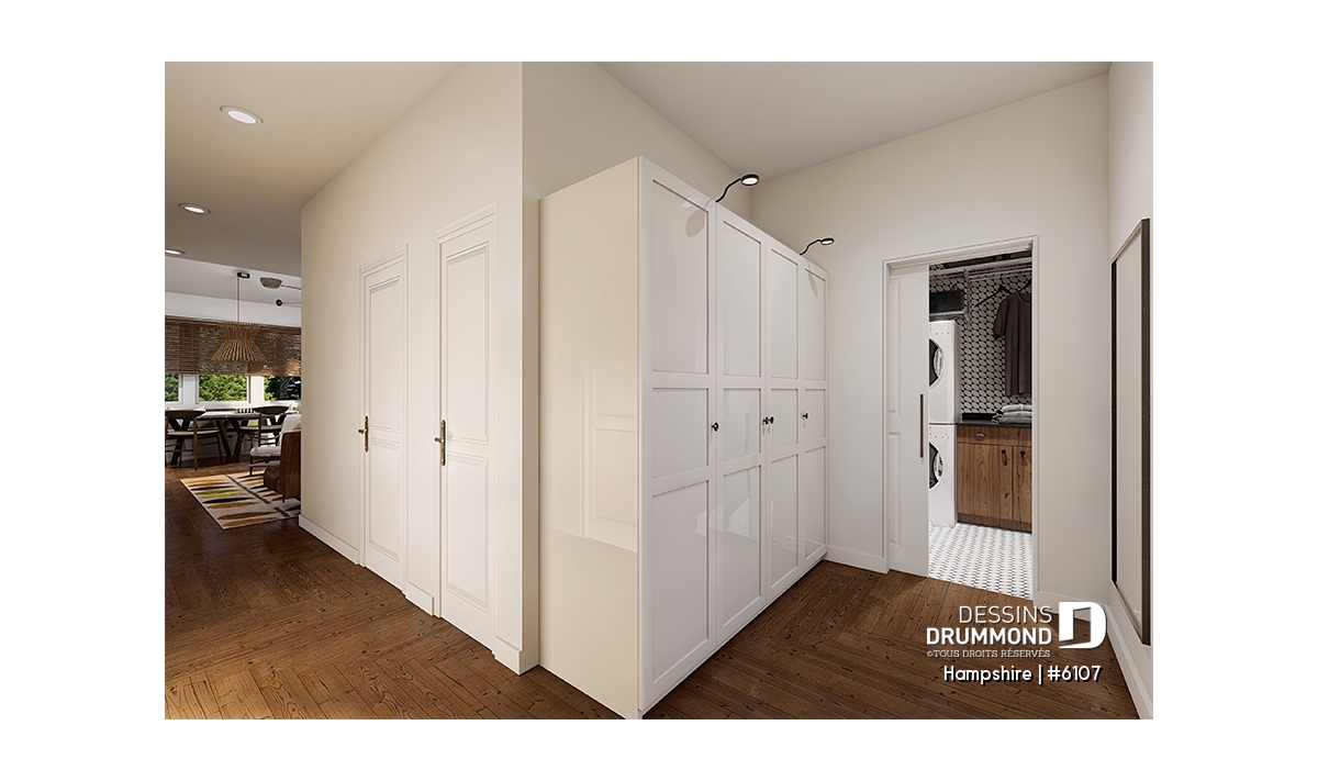 Foyer central et ouvert sur la salle de séjour, salle à manger et cuisine.