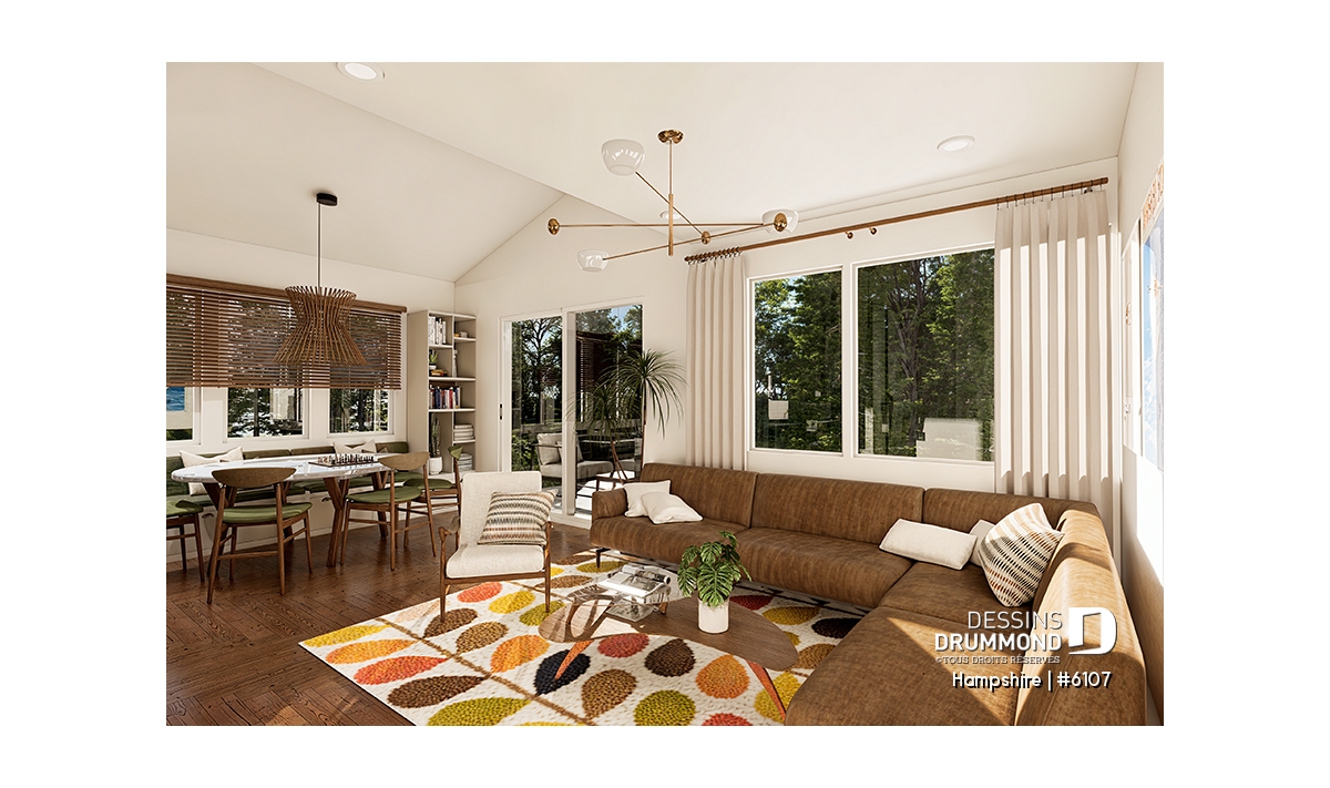 Plan de maison moderne d'inspiration mid-century vintage.