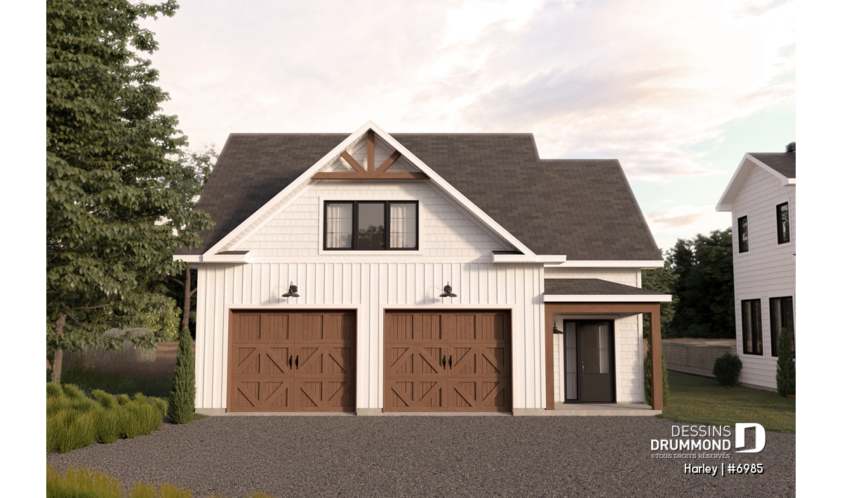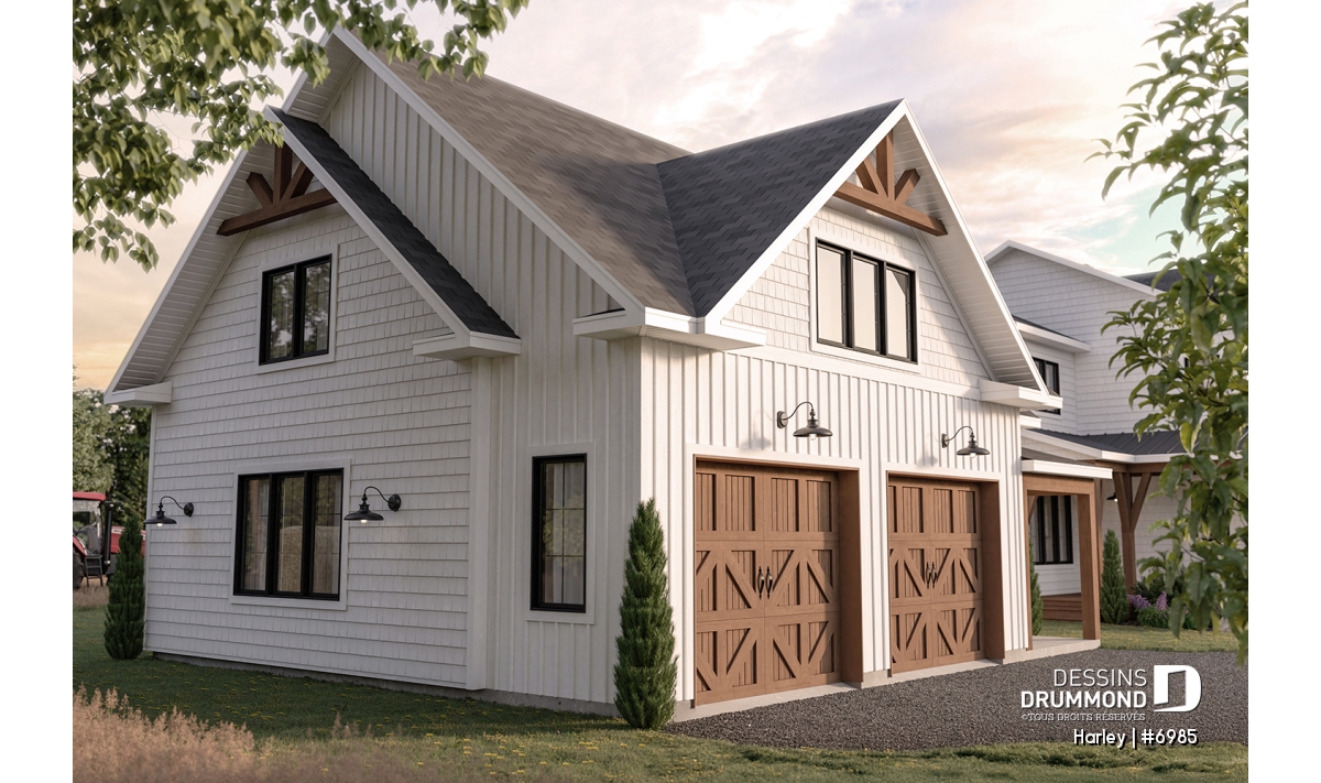 Un garage double de style ferme qui apporte du cachet à votre propriété.