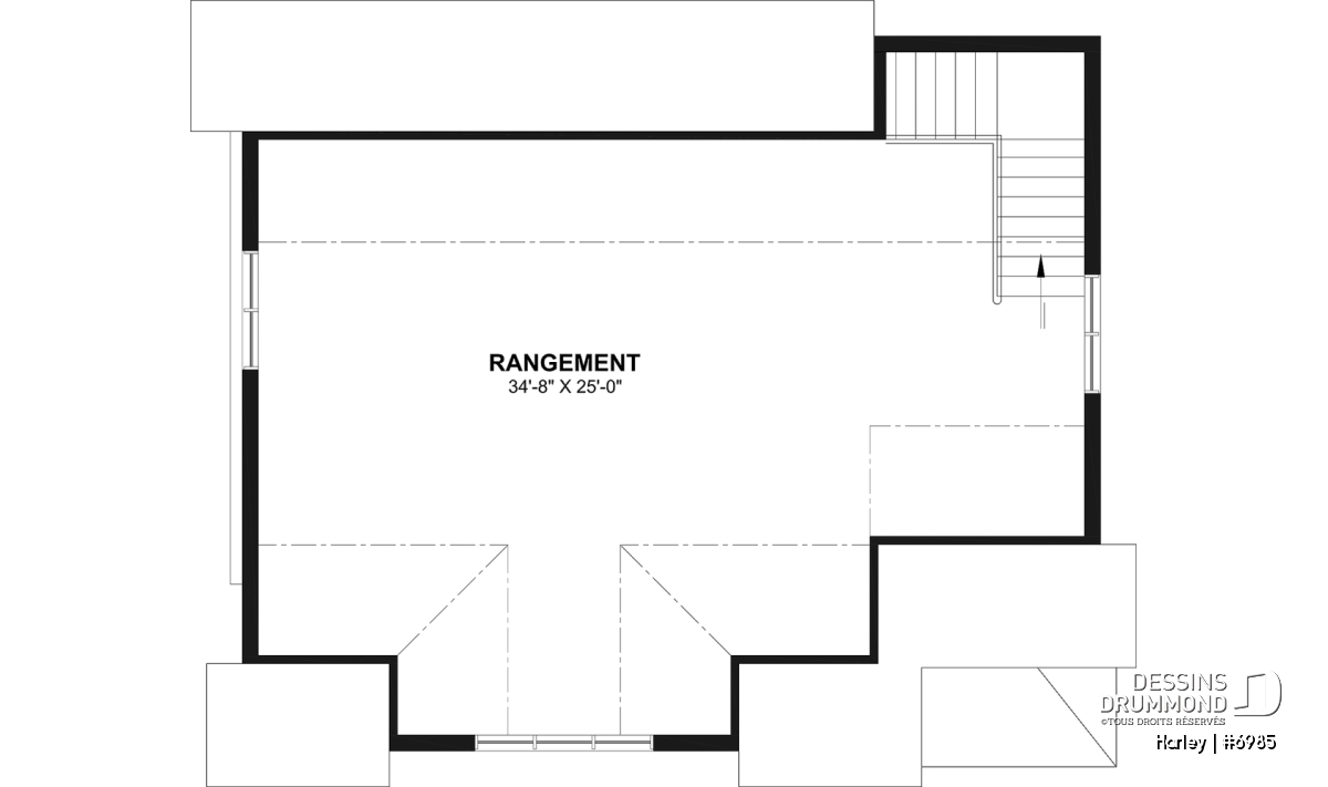 Souvent localisé au-dessus du garage, le rangement boni est utilisé uniquement comme rangement et il est généralement accessible du garage via un escalier escamotable. De plus, la finition de ce rangement boni est toujours INCLUSE dans nos estimation du coût de construction, sauf si avis contraire dans les sections « Description et/ou Éléments descriptifs » de la page du plan.