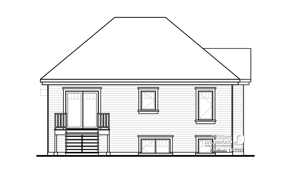 Construction économique maximisant les pi 2 intérieurs. Cuisine avec îlot-lunch central. Version disponible avec "bachelor" au sous-sol ( voir 3323B ).