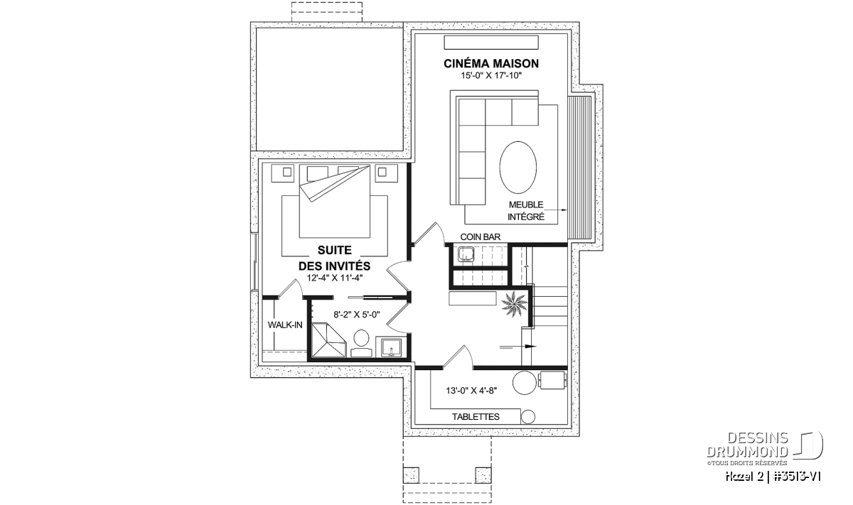 *Si vous souhaitez acheter le plan du sous-sol aménagé, tel que présenté sur la page de ce plan, veuillez sélectionner cette option dans le panier d'achat, dans la section "Sélectionner votre fondation". Si vous ne sélectionnez pas cette option, vous recevrez le sous-sol non fini, sans frais additionnel.