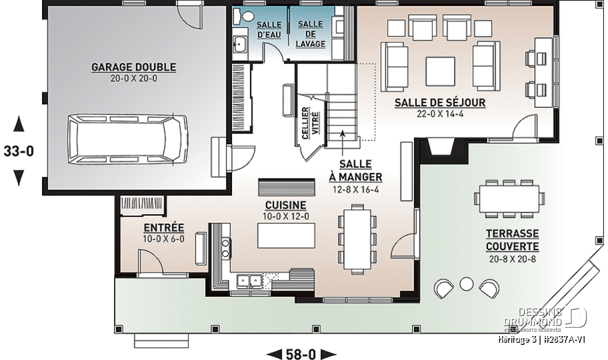 Largeur 58'0" Profondeur 33'0"