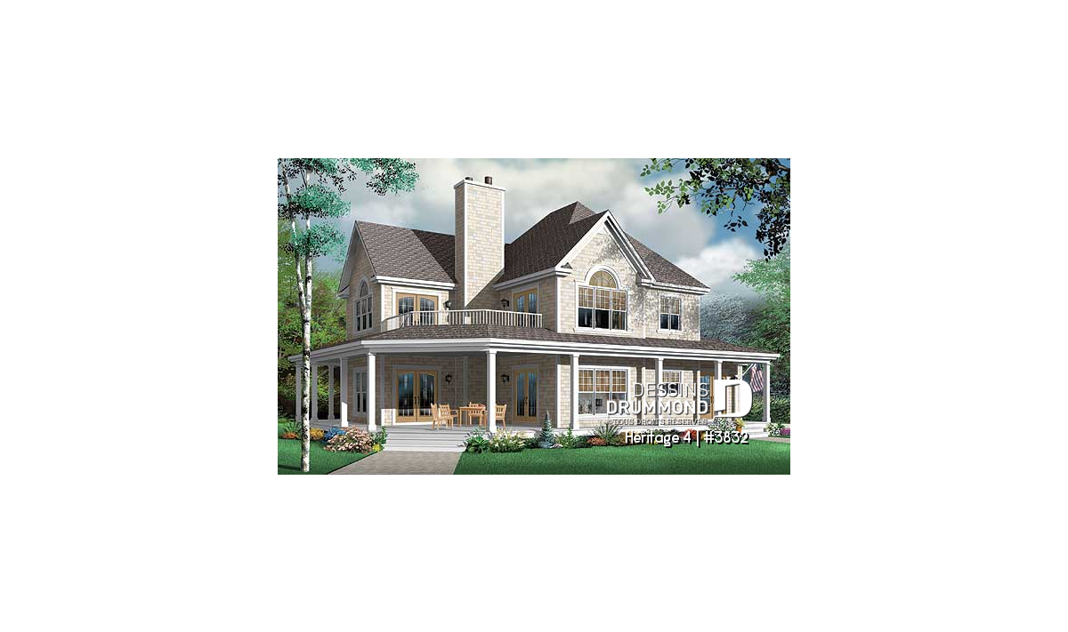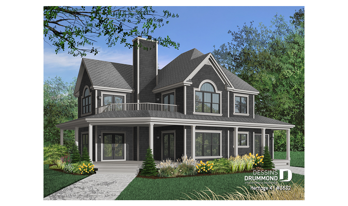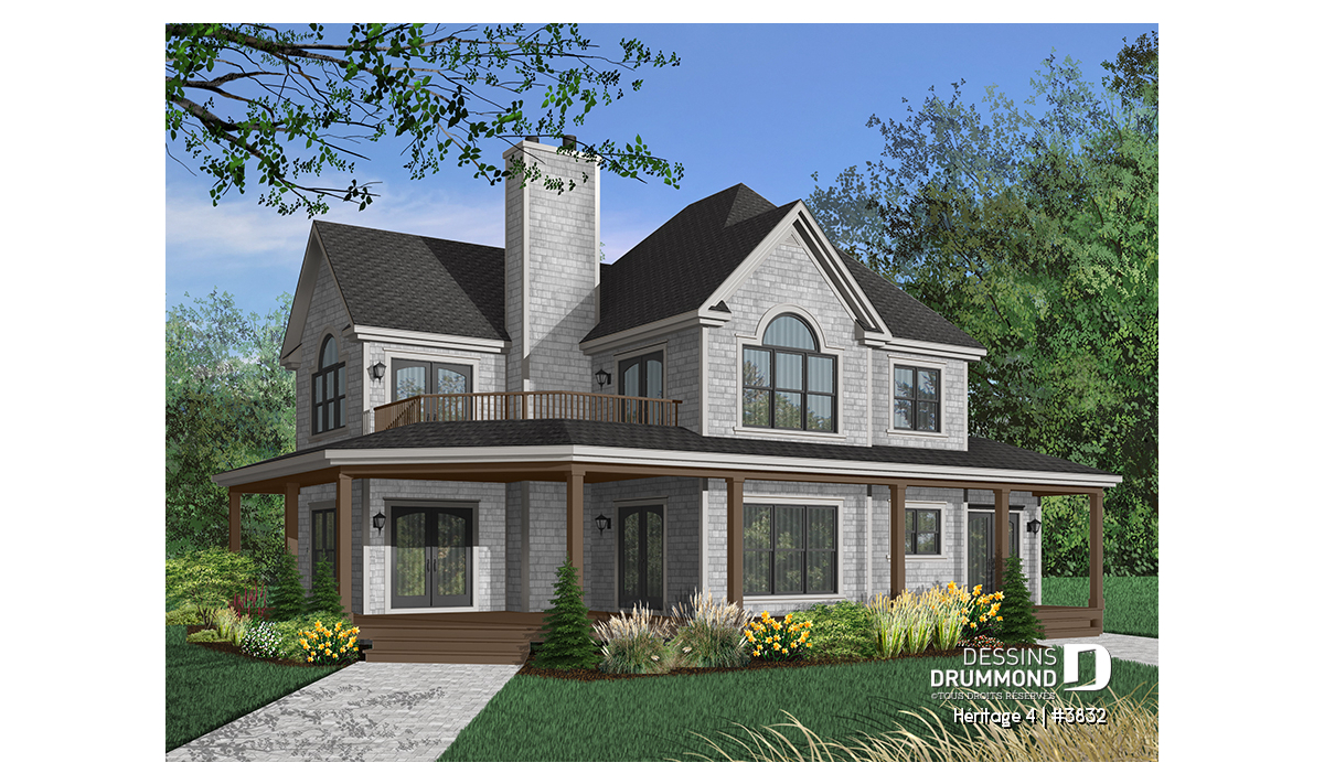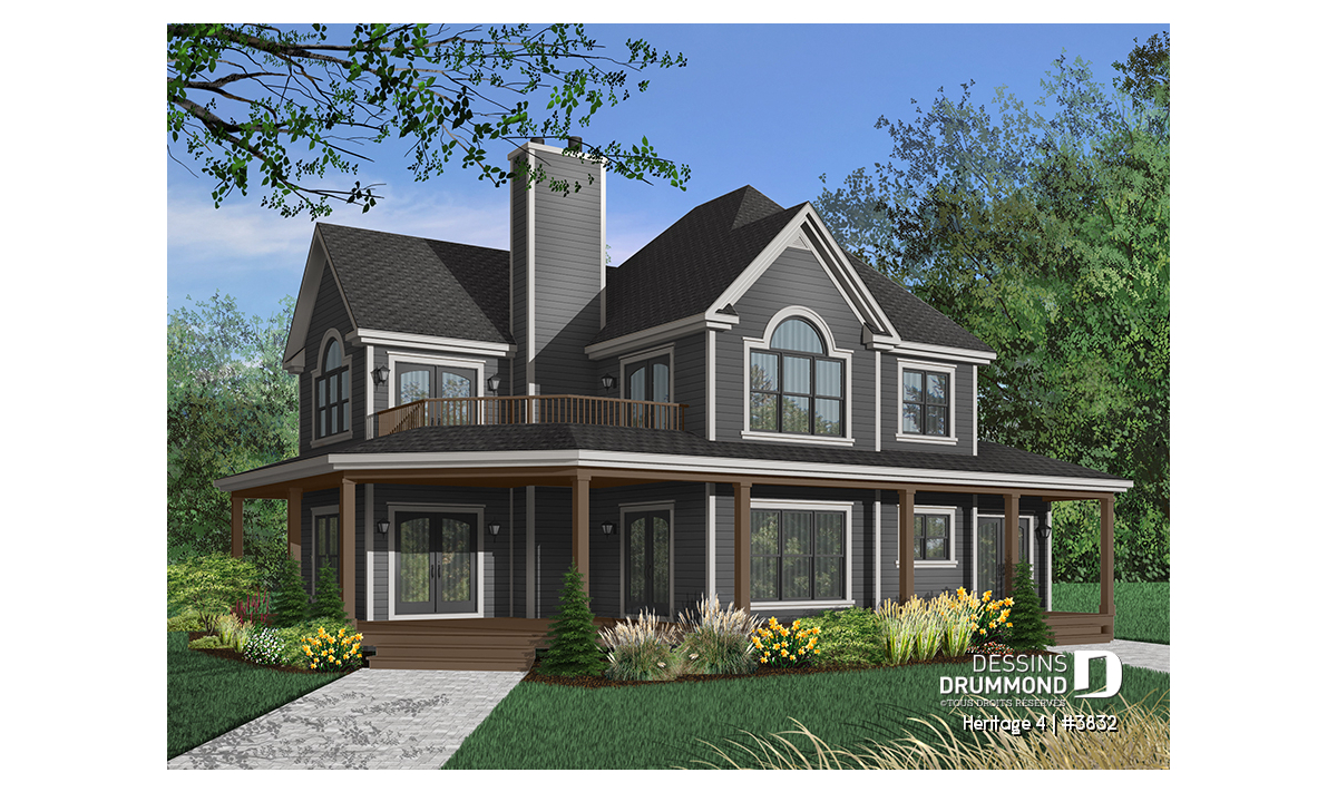 Plan de maison champêtre, idéale pour terrain avec vue.