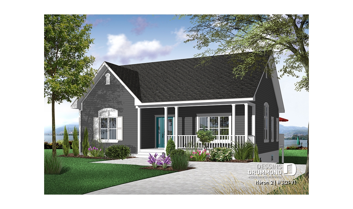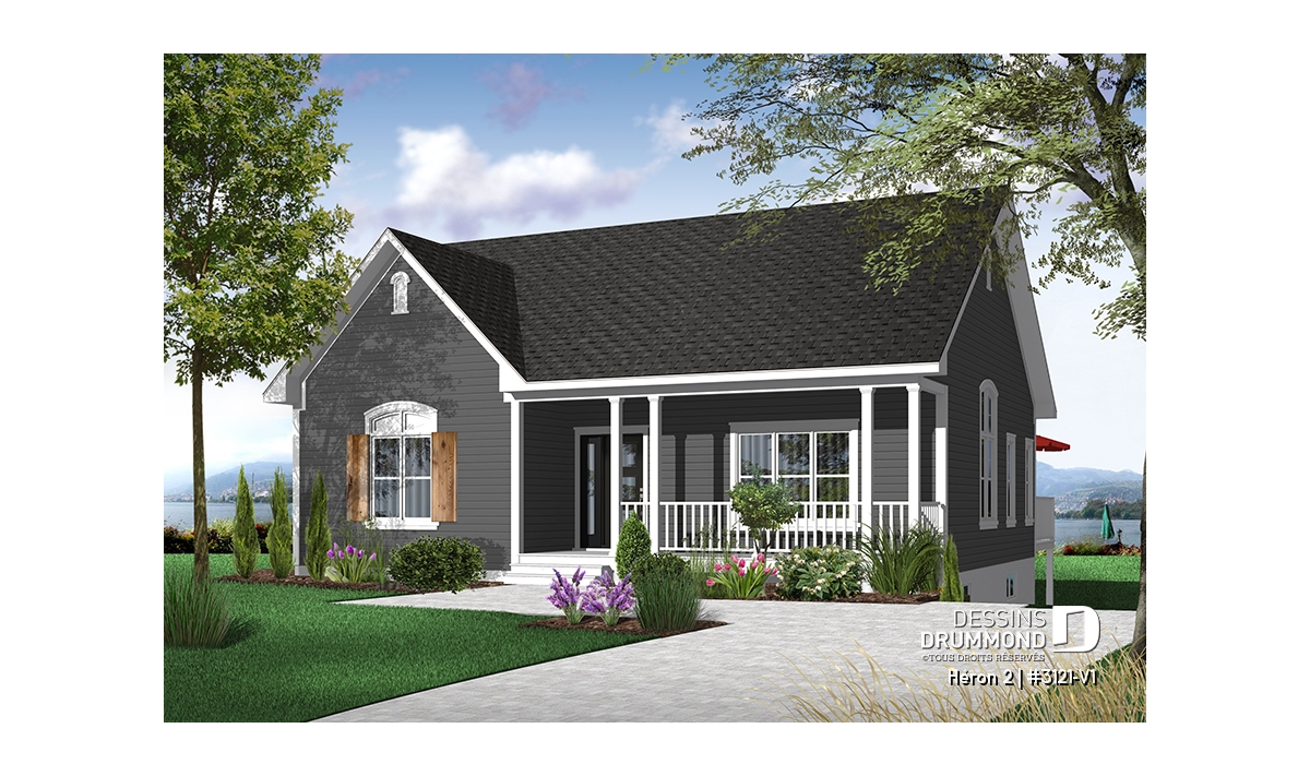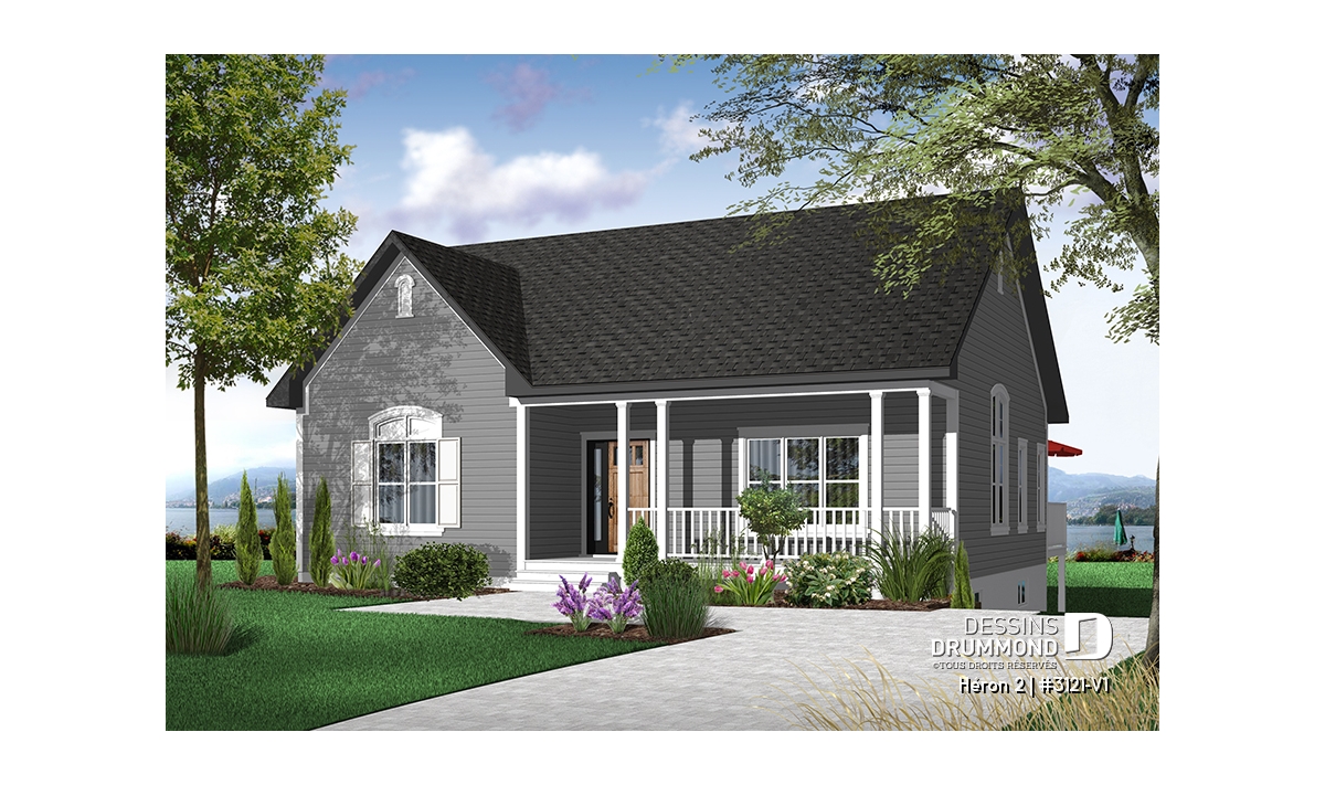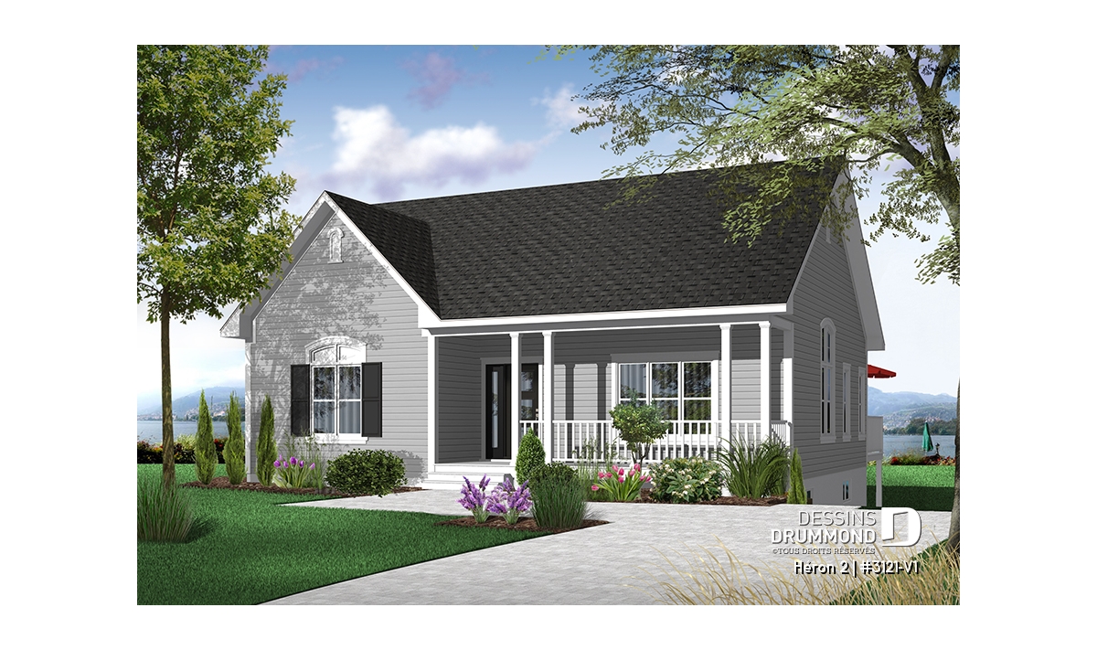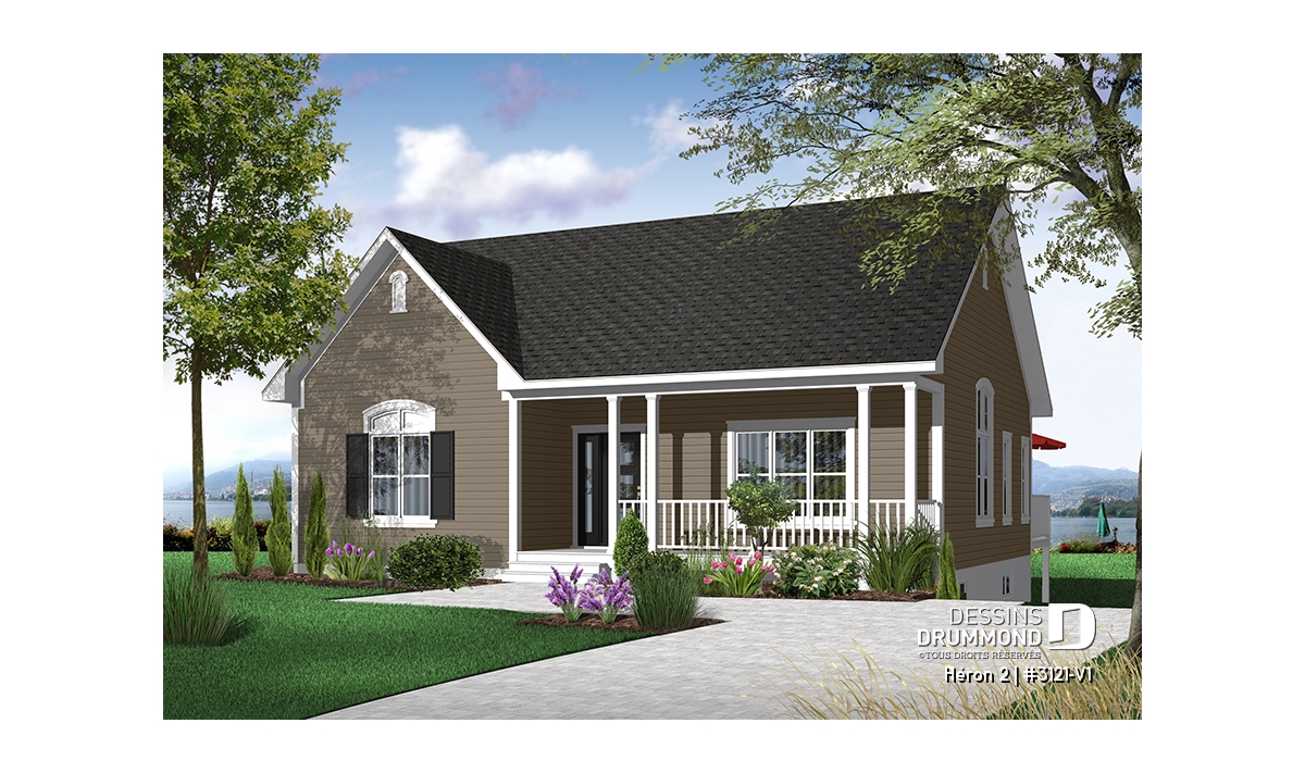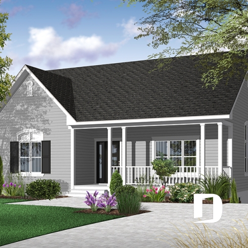 Plan de bungalow champêtre, 2 à 4 chambres, plafond 9', vestibule fermé, garde-manger, buanderie au r-d-c