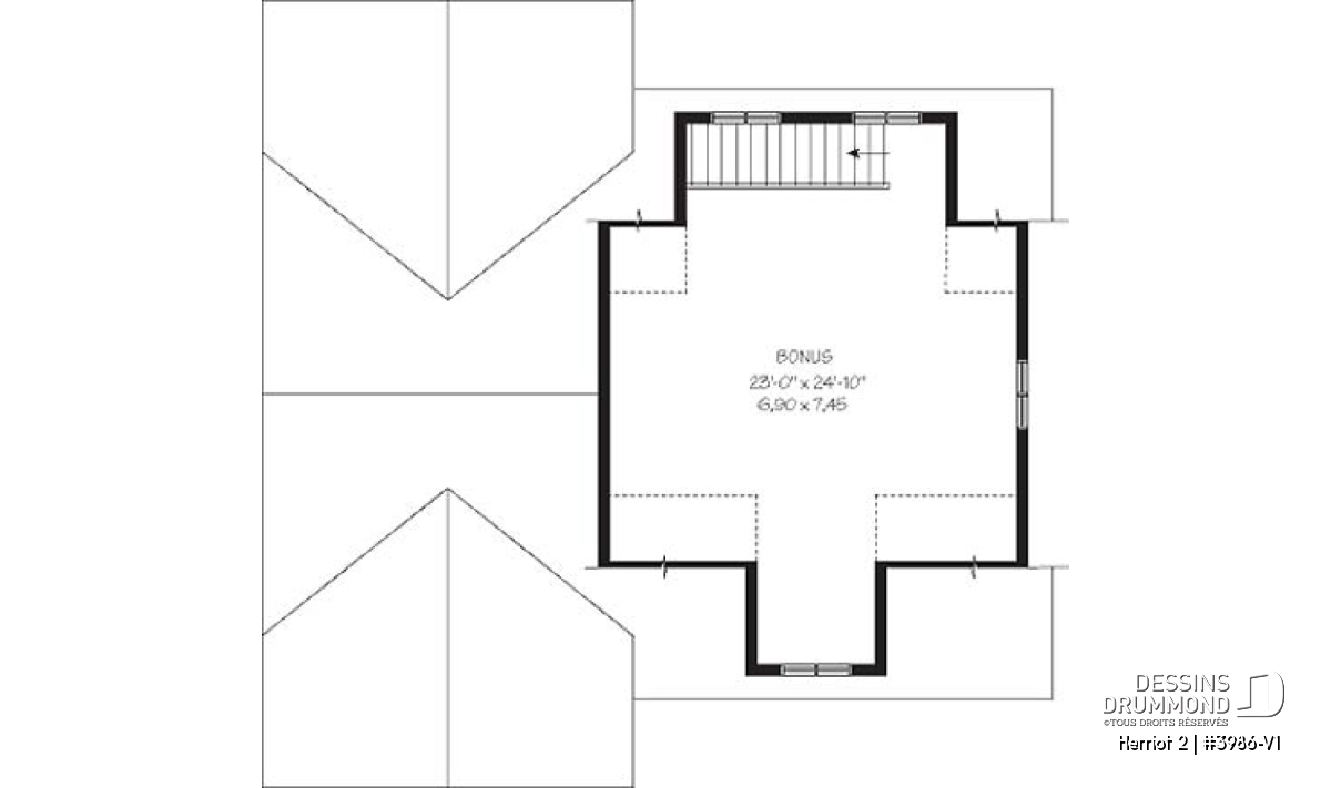 L'espace boni aménageable est généralement prévu au-dessus du garage et il est accessible de la maison. Comme il est prévu aménageable, il pourra devenir un bureau, un espace buanderie, une salle de bain, un coin bibliothèque ou même une chambre additionnelle pour laquelle les propriétaires devront s'assurer d'avoir une fenêtre conforme aux normes en vigueur. De plus, la finition de cette espace boni est toujours INCLUSE dans nos estimation du coût de construction, sauf si avis contraire dans les sections « Description et/ou Éléments descriptifs » de la page du plan.