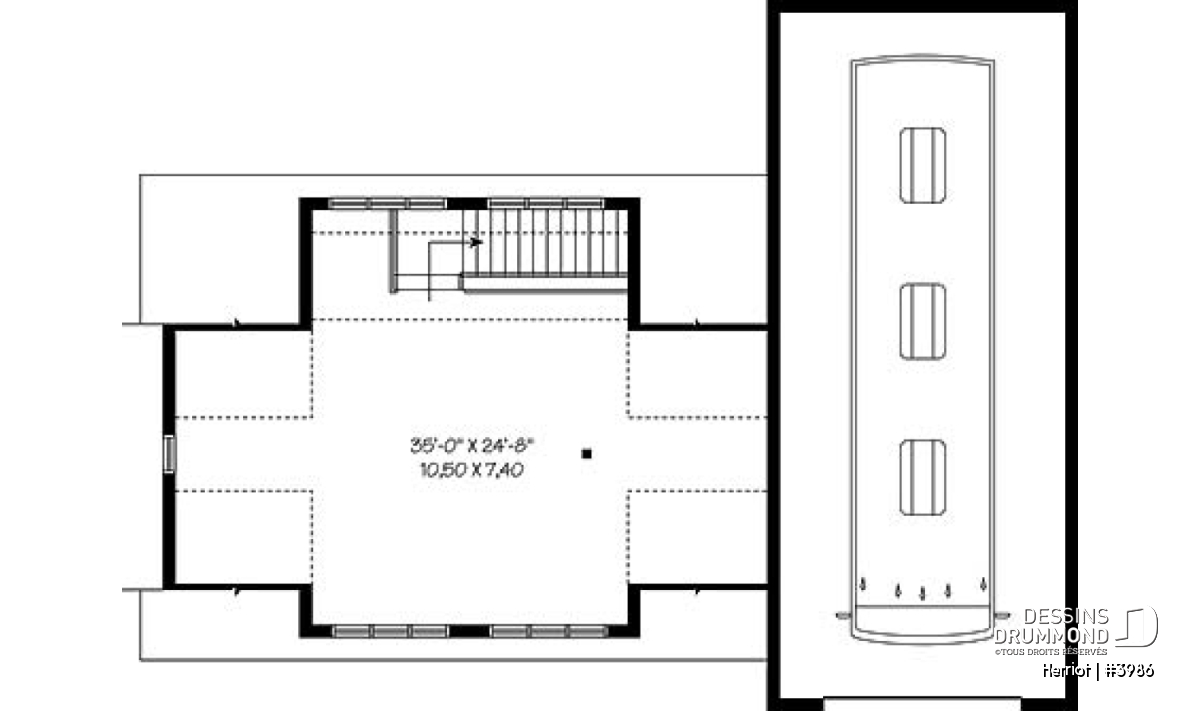 L'espace boni aménageable est généralement prévu au-dessus du garage et il est accessible de la maison. Comme il est prévu aménageable, il pourra devenir un bureau, un espace buanderie, une salle de bain, un coin bibliothèque ou même une chambre additionnelle pour laquelle les propriétaires devront s'assurer d'avoir une fenêtre conforme aux normes en vigueur. De plus, la finition de cette espace boni est toujours INCLUSE dans nos estimation du coût de construction, sauf si avis contraire dans les sections « Description et/ou Éléments descriptifs » de la page du plan.