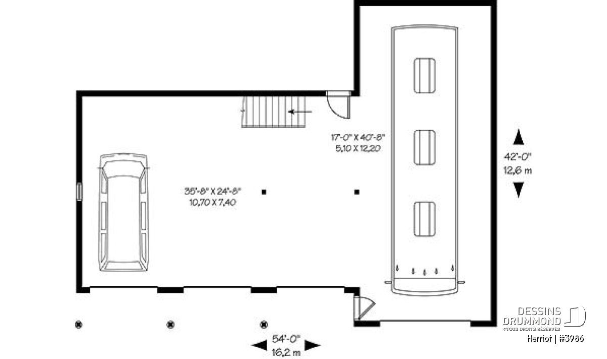| Largeur | 54'0" | Profondeur | 42'0" |