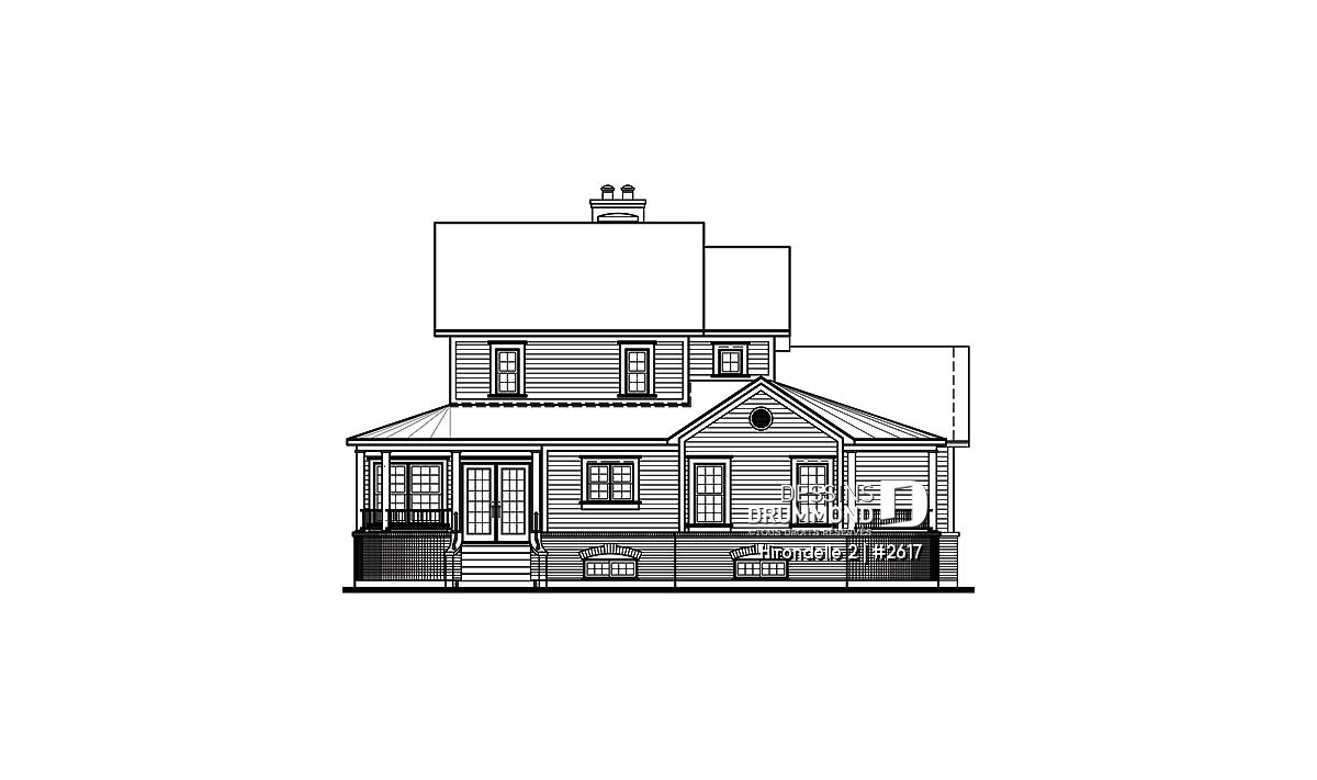 Vue avant - MODÈLE DE BASE - Plan de maison Champêtre 4 chambres, garage double, chambre des maîtres r-d-c, solarium, 2 balcons abrités - Hirondelle 2