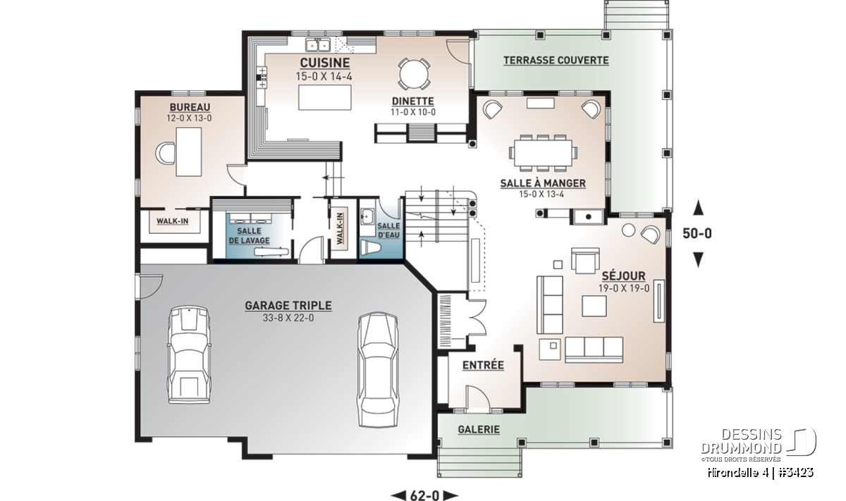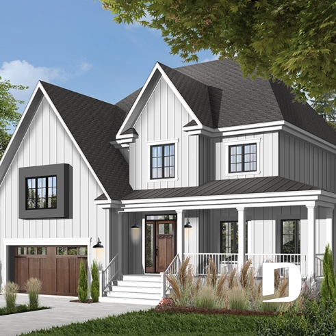 Réalisé dans une pensée davantage américaine qu’européenne, ce cottage nous suggère donc des attributs qui en font foi dont un garage triple, des galeries couvertes ainsi que de bien confortables espaces intérieurs.