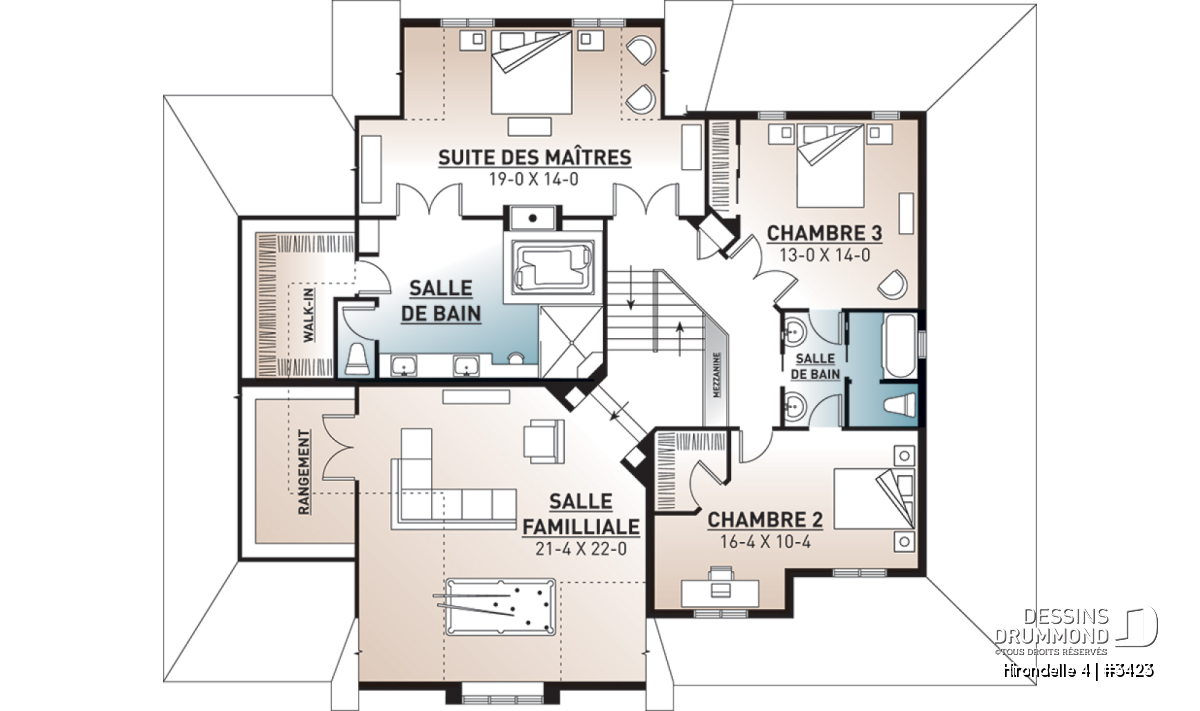 À mi-chemin entre le rez-de-chaussée et l’étage, on peut apprécier une vaste salle familiale que plusieurs convertiront en cinéma maison alors qu’à l’étage, trois belles chambres, dotées d’excellents rangements, s’avèrent des plus fonctionnels avec d’une part une salle de bain fort bien organisée et accessible des deux chambres secondaires et d’autre part, une salle de bain offrant un bain et un foyer mitoyen avec la chambre des maîtres; de quoi faire l’envie de bien des propriétaires.