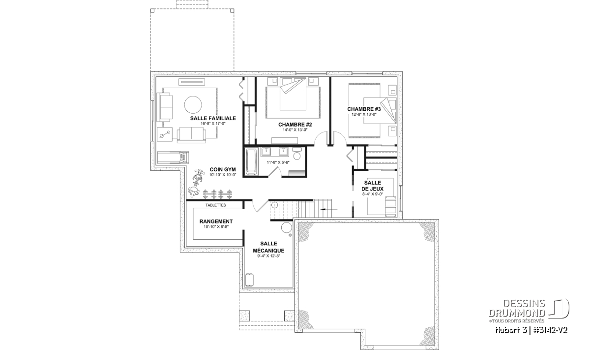 *Si vous souhaitez acheter le plan du sous-sol aménagé, tel que présenté sur la page de ce plan, veuillez sélectionner cette option dans le panier d'achat, dans la section "Sélectionner votre fondation". Si vous ne sélectionnez pas cette option, vous recevrez le sous-sol non fini, sans frais additionnel.