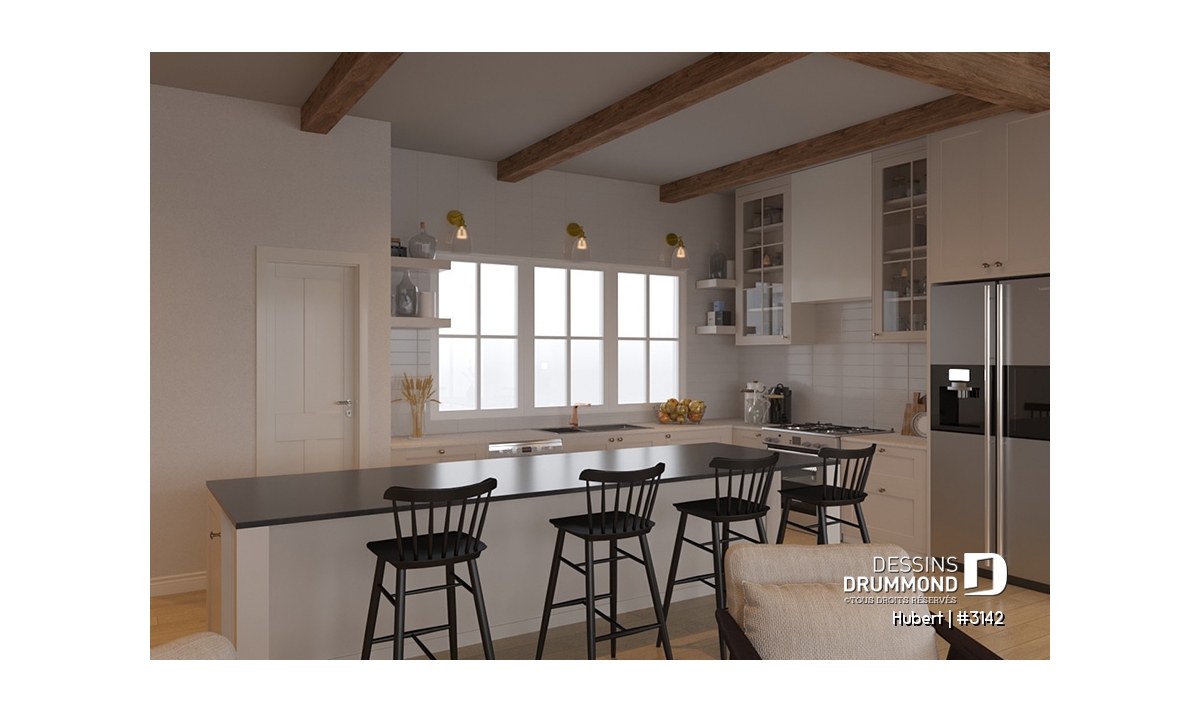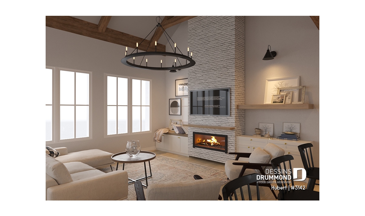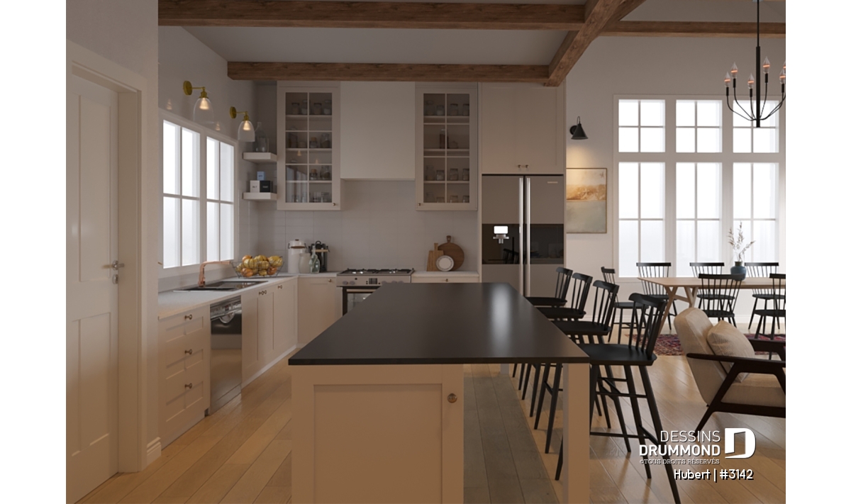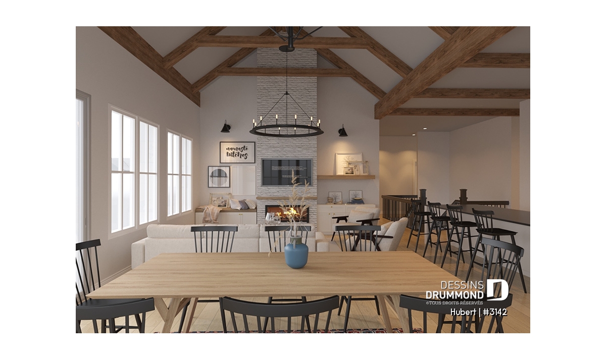 Salle de lavage au rez-de-chaussée, Suite des maîtres au rdc, Bureau / Salle étude, Salle de jeux, Aire ouverte, Plafond cathédrale, Banquette, Garde-manger, Foyer, Lavabo double, Bain et douche séparés, Walk-in ch. maîtres, Cinema maison, Plafond à plus de 8', Porte(s) de grange, Auto-Construction