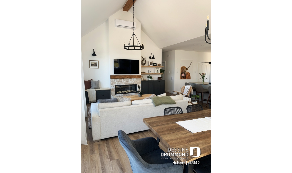 Les plafonds de 9 pieds procurent une belle impression d’espace, tandis que la salle à manger et le salon profitent d’un plafond cathédrale et d’un foyer chaleureux, créant une atmosphère à la fois raffinée et réconfortante.