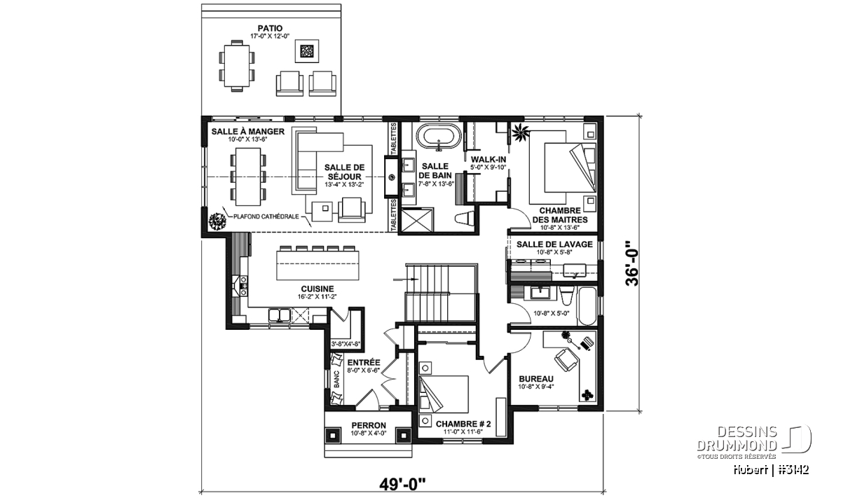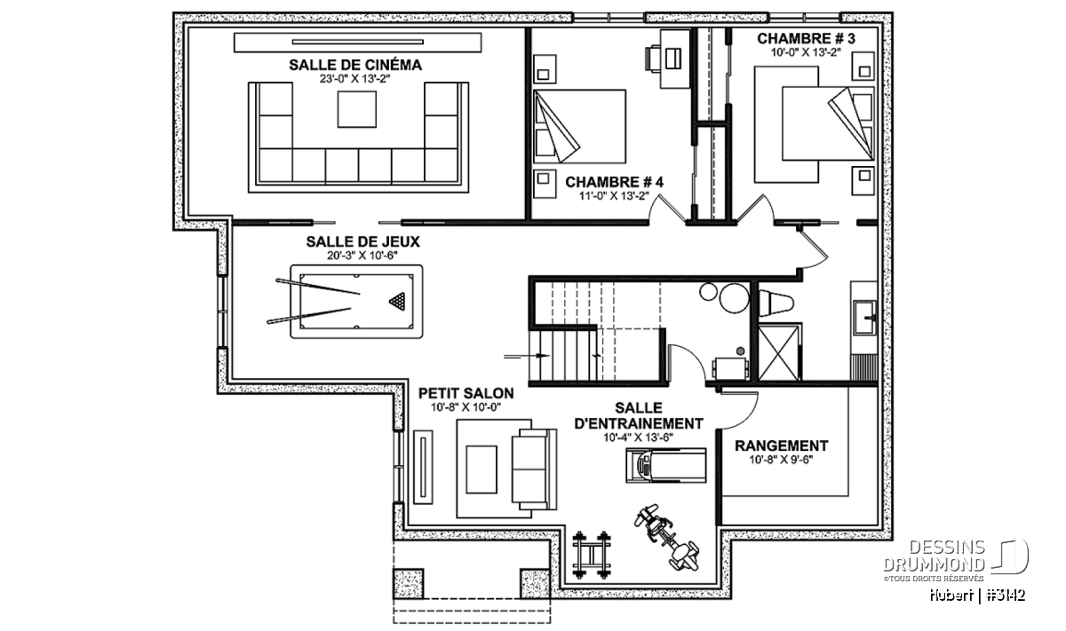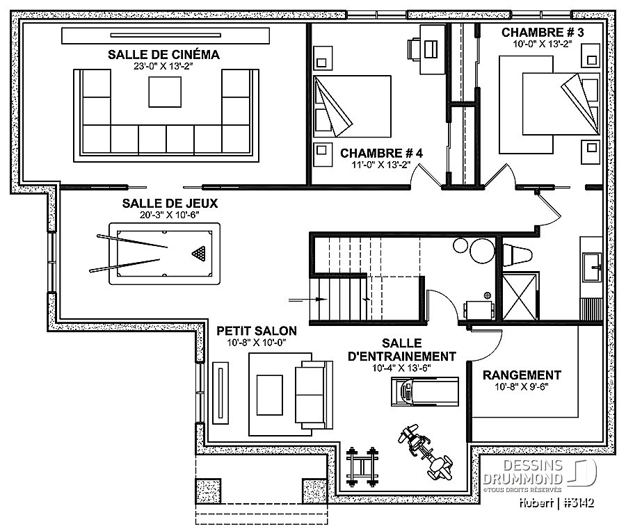 *Si vous souhaitez acheter le plan du sous-sol aménagé, veuillez sélectionner cette option dans le panier d'achat, dans la section "Sélectionner votre fondation". Si vous ne sélectionnez pas cette option, vous recevrez le sous-sol non fini, sans frais additionnel.