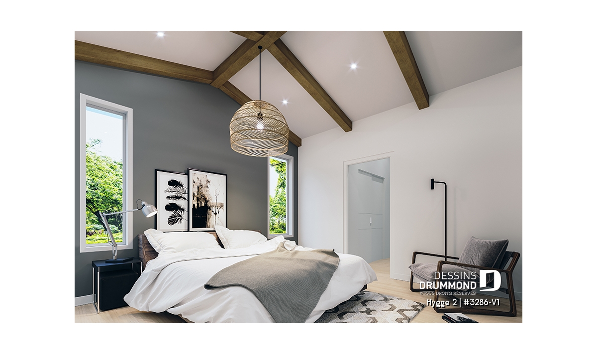 À l’intérieur, le plan met de l’avant une circulation fluide, idéale pour une vie de famille contemporaine. La suite des parents se distingue par son ambiance raffinée. Son plafond cathédrale lui confère une impression d’espace et de calme, tandis que la salle de bain privée et les rangements bien pensés offrent un confort appréciable jour après jour. Cette pièce devient ainsi un véritable refuge où il fait bon se détendre.