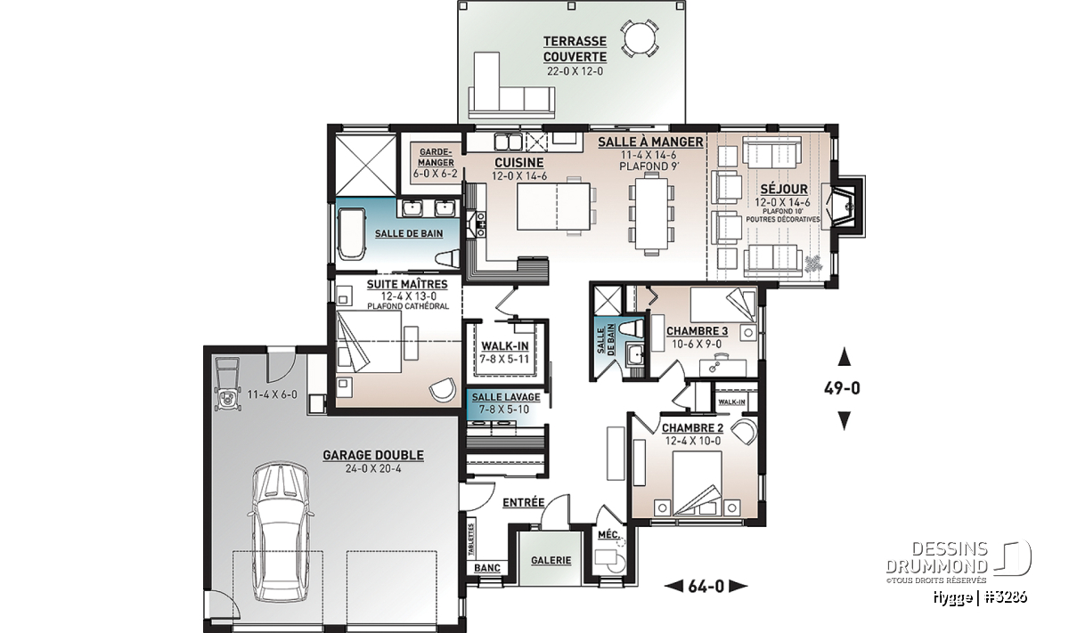 Aire ouverte, Salle de lavage au rez-de-chaussée, Bureau / Salle étude, Chambres séparées, Vue paronamique, Foyer, Garde-manger, Plafond à plus de 8', Plafond avec fausses poutres, Ilôt, Walk-in ch. maîtres, Vestiaire, Pergola, Bain et douche séparés, Lavabo double, Terrasse abritée, Banquette, Plafond cathédrale