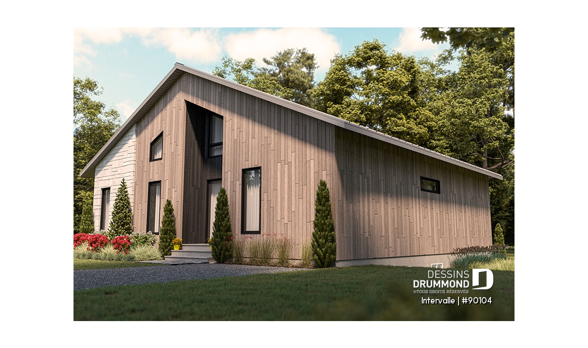 Une maison aux volumes modestes assurant une construction simplifiée, tout en favorisant la maximisation des espaces intérieurs, afin de réduire le nombre de pied carrés et le coût de construction.