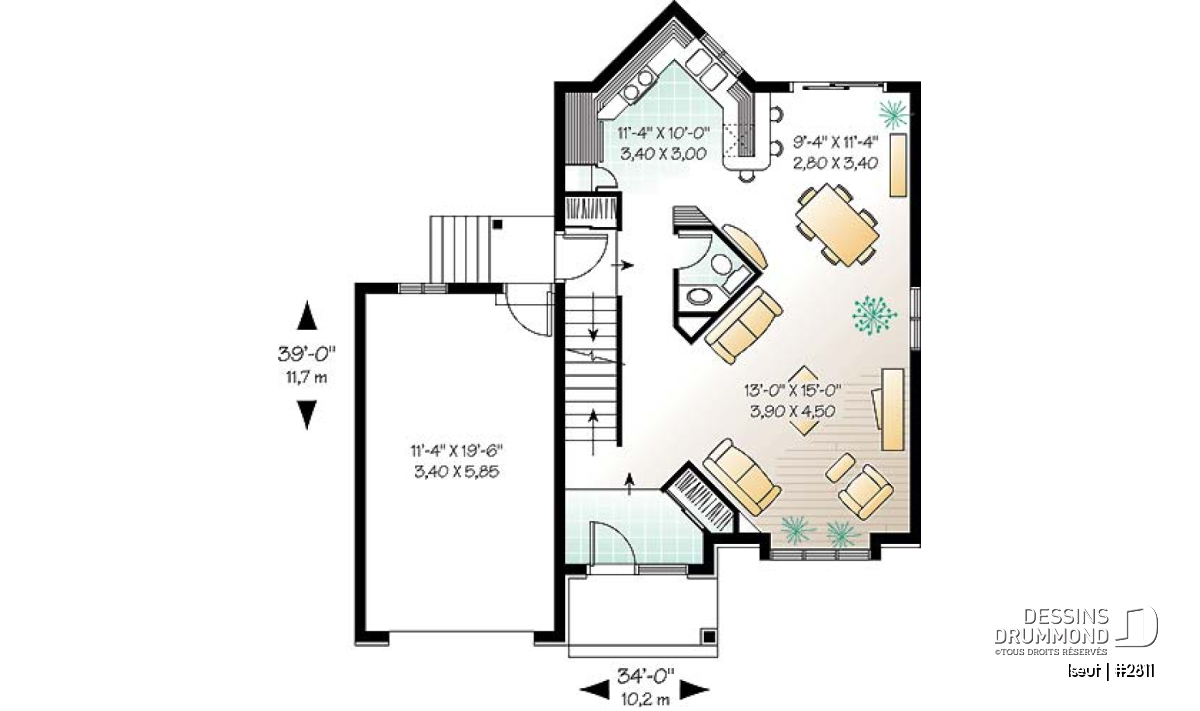 | Largeur | 34'0" | Profondeur | 39'0" |
