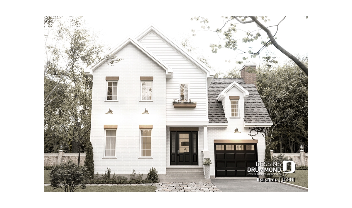 Cette maison de campagne à deux étages d’inspiration française marie avec finesse élégance, confort et fonctionnalité. Son architecture intemporelle séduit dès le premier regard, grâce à ses proportions harmonieuses, son style raffiné et son garage intégré qui s’harmonise parfaitement à la façade. Cette demeure représente le parfait équilibre entre charme classique et aménagements pensés pour la vie moderne.