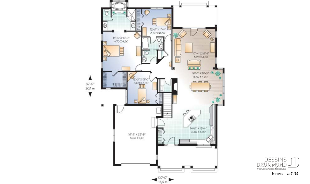 Voici un plain pied qui se veut à la fois spacieux et confortable avec ses 2118 pi2 habitables et son garage respectable.