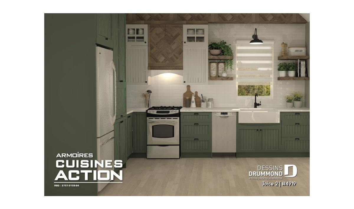 À l’intérieur, ces attraits se traduisent par la présence d’une chambre au rez-de-chaussée, fait surprenant pour une telle grandeur de maison, par un secteur activités entièrement ouvert et agrémenté d’un plafond cathédrale à la salle de séjour afin de donner encore plus d’envergure à l’espace intérieur. À l’étage, cette popularité est justifiée par la présence d’un espace aménageable en mezzanine que plusieurs apprécieront convertir en troisième chambre.