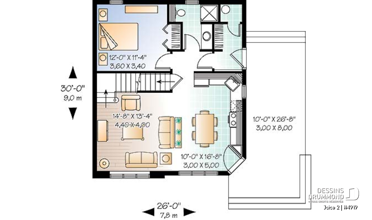 | Largeur | 26'0" | Profondeur | 30'0" |