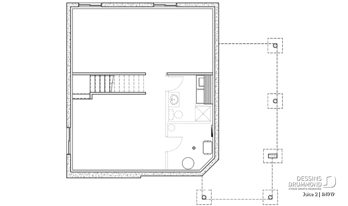 La fondation précisée à cette ligne est incluse dans le plan que vous recevrez, dans le prix du plan ainsi que dans l'estimation du coût de construction SAUF dans le cas d'un sous-sol aménagé. La finition d'un sous-sol aménagé n'est JAMAIS incluse dans notre estimation sauf si avis contraire précisé dans la description du plan et/ou dans la section élément distinctif, sur la page du plan. Un sous-sol aménageable est un sous-sol non-fini, à finir plus tard, selon vos besoins.