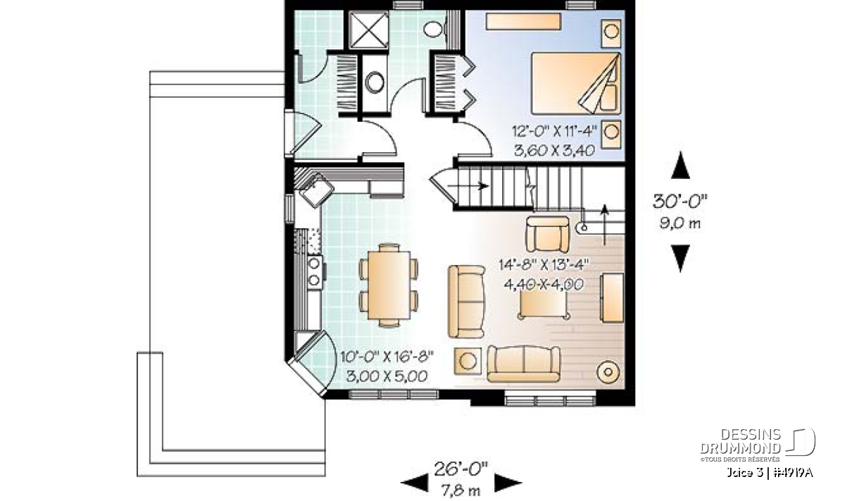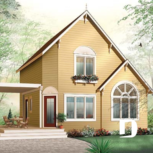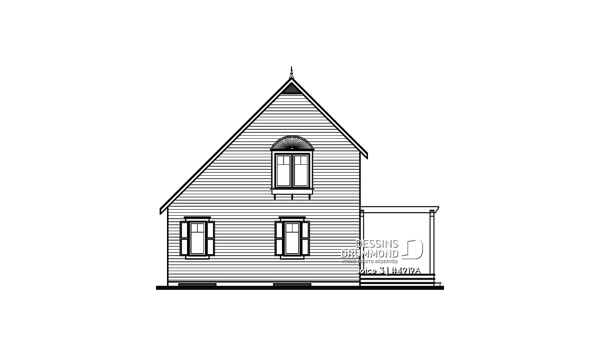 Plan de petite maison 2 à 3 chambres, à aire ouverte et superbe terrasse abritée