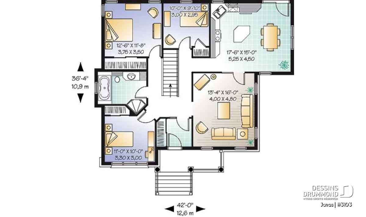 | Largeur | 42'0" | Profondeur | 36'4" |