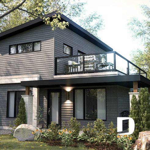 Le balcon avant est abritée, et la balcon latérale sur la droite est partiellement abritée. Selon l'orientation du votre maison, prévoir cette portion sur le sud, question de profiter au maximum de l'ensoleillement dans le secteur cuisine, salle à dîner et salon.
