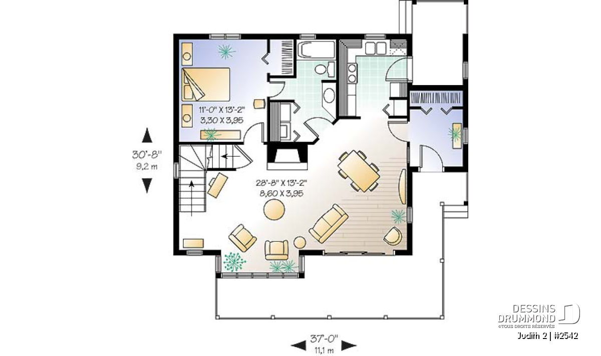 Rez-de-chaussée - Plan de maison avec beaucoup de lumière naturelle, 3 chambres, plafond cathédrale, chambre maître au r-d-c - Judith 2