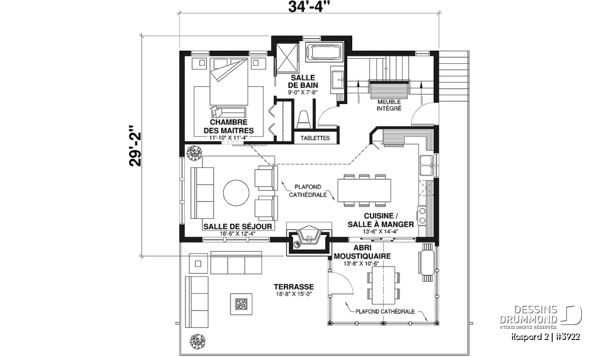 | Largeur | 34'4" | Profondeur | 29'2" |