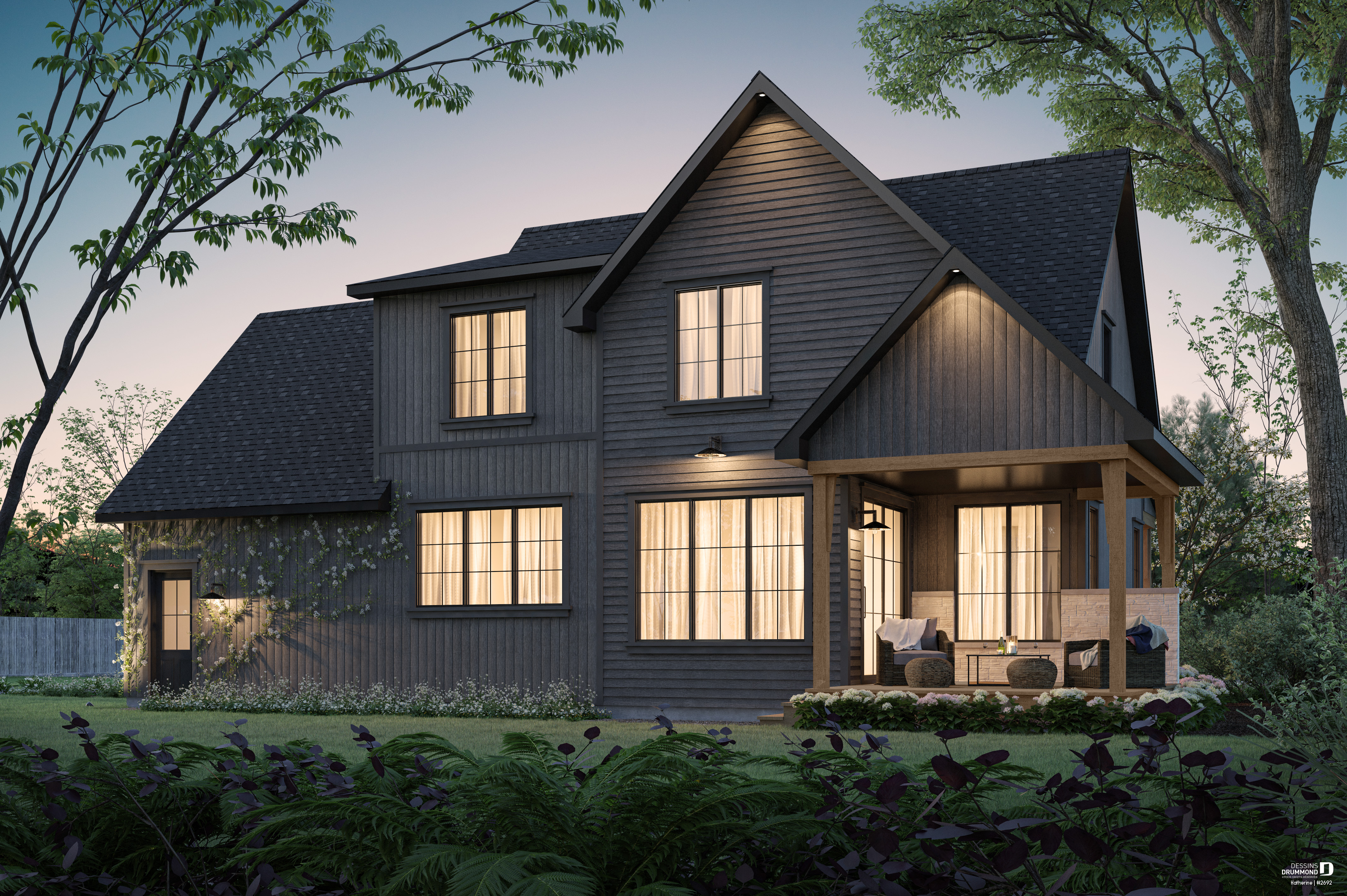 Les estimations de maison incluent les revêtements tels qu'illustrés sur notre site. Les maisons modestes sont calculées avec un revêtement de clin régulier en vinyle. Pour les maisons régulières et plus complexes, nous ajoutons des montants approximatifs (au pi.ca.) : clin de fibrociment, de cèdre, maçonnerie légère ou régulière (partiel ou total), board & batten, bois, et autres. Les poutres de bois illustrées sur l'extérieure de nos maisons sont aussi incluses dans le coût, mais elles sont «capées » et non en bois massif. Il en est de même pour les portes d'entrée et portes de garage. Elles sont incluses aux estimations, mais de qualité standard. Concernant les revêtements de maçonnerie : on propose, sur plusieurs modèles, une touche de brique-pierre comme on en retrouve chez la plupart des fabricants de brique (faire attention de ne pas confondre avec de la pierre naturelle, rarement sur nos illustrations et beaucoup plus dispendieuse). NOTE : Si vous souhaitez utiliser un revêtement de maçonnerie plutôt qu'un clin comme illustré sur le plan que vous avez choisi, svp nous contacter car vous aurez besoin de faire modifier le plan en conséquence.