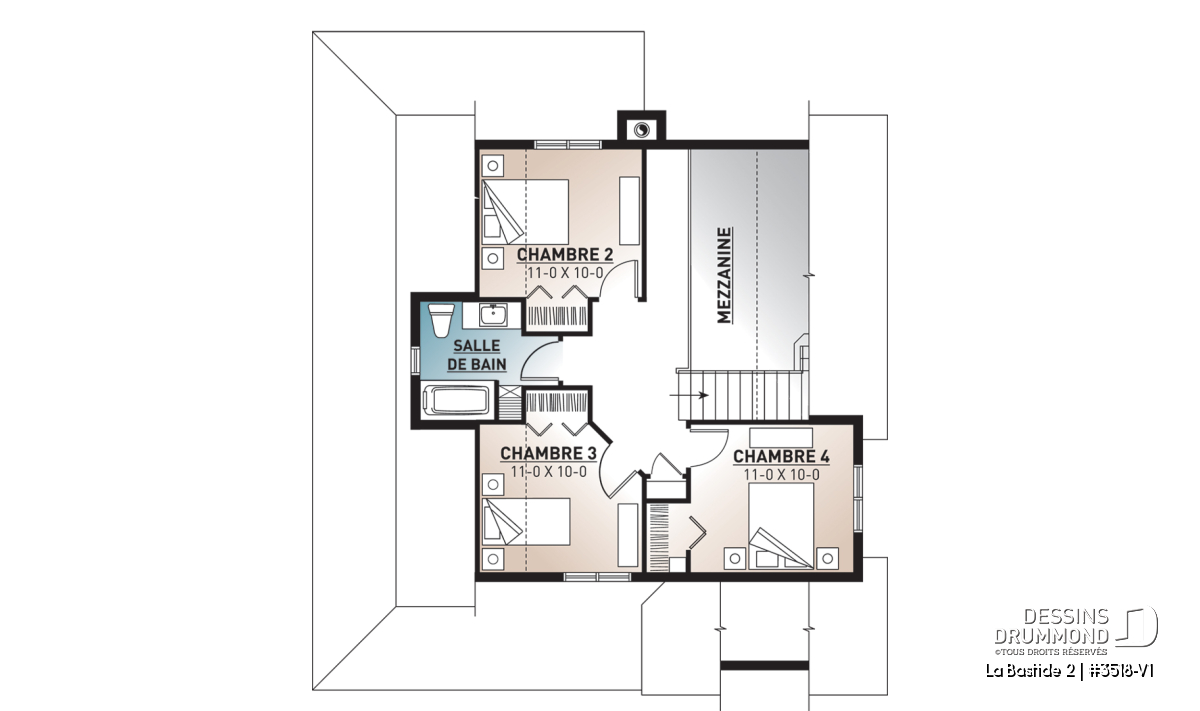 À l’étage, l’agrandissement se traduit par l’ajout d’une quatrième chambre, portant le total à 4 chambres sur deux niveaux, une configuration idéale pour les familles. Une salle de bain avec chute à linge intégrée facilite la vie quotidienne, tandis qu’une mezzanine baignée de lumière constitue l’endroit parfait pour un coin lecture, un espace créatif ou un bureau secondaire.