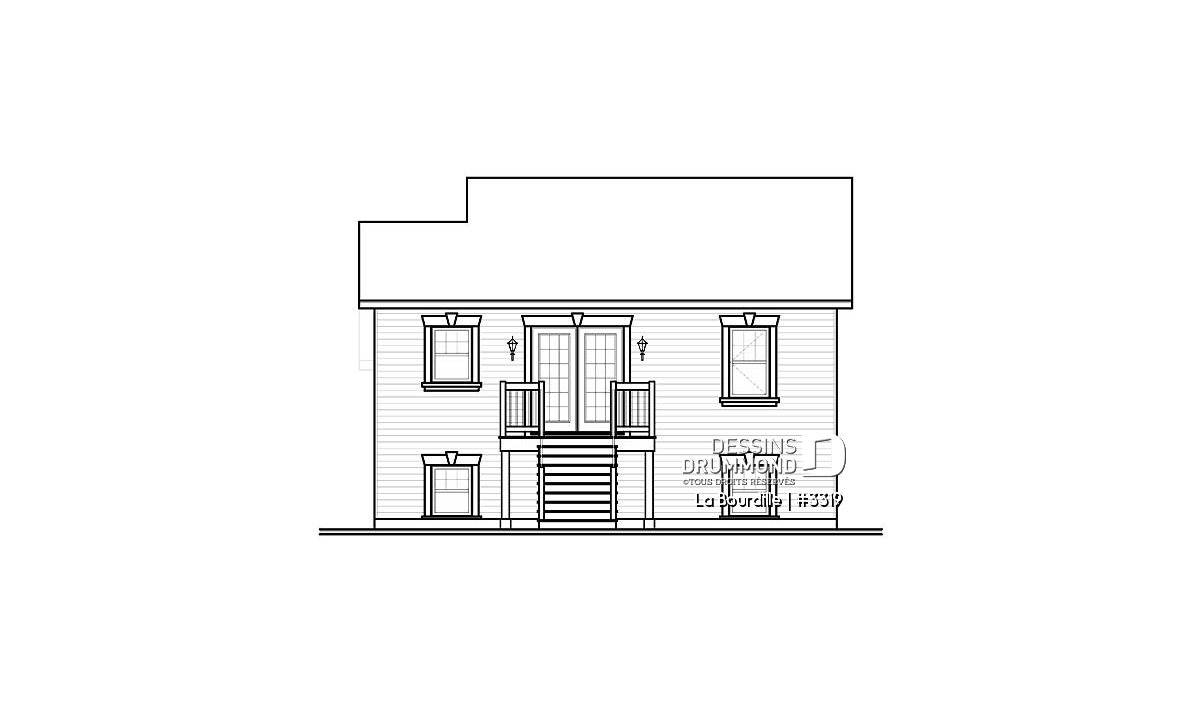 Avec son style champêtre, son entrée split bien pensée et sa conception lumineuse, le plan de maison LA BOURDILLE (#3319) propose un milieu de vie simple, chaleureux et évolutif, parfaitement aligné avec une vision durable et réfléchie de l’habitation.
