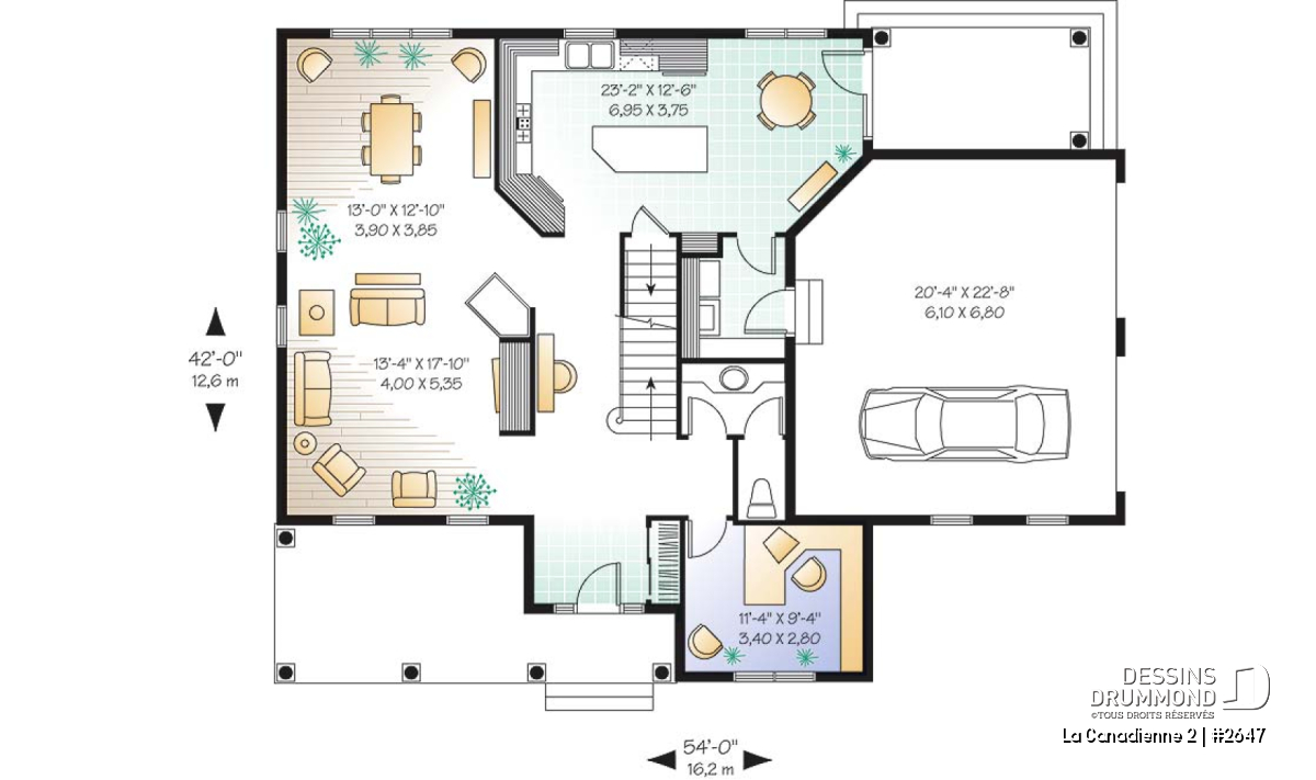 Plafond à 9pi au rez-de-chaussée, galerie avant confortable et abritée, bureau à domicile, cuisine fort logeable, espace dînette en table et 4 chambres bien organisées.