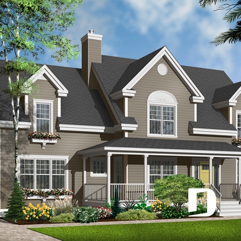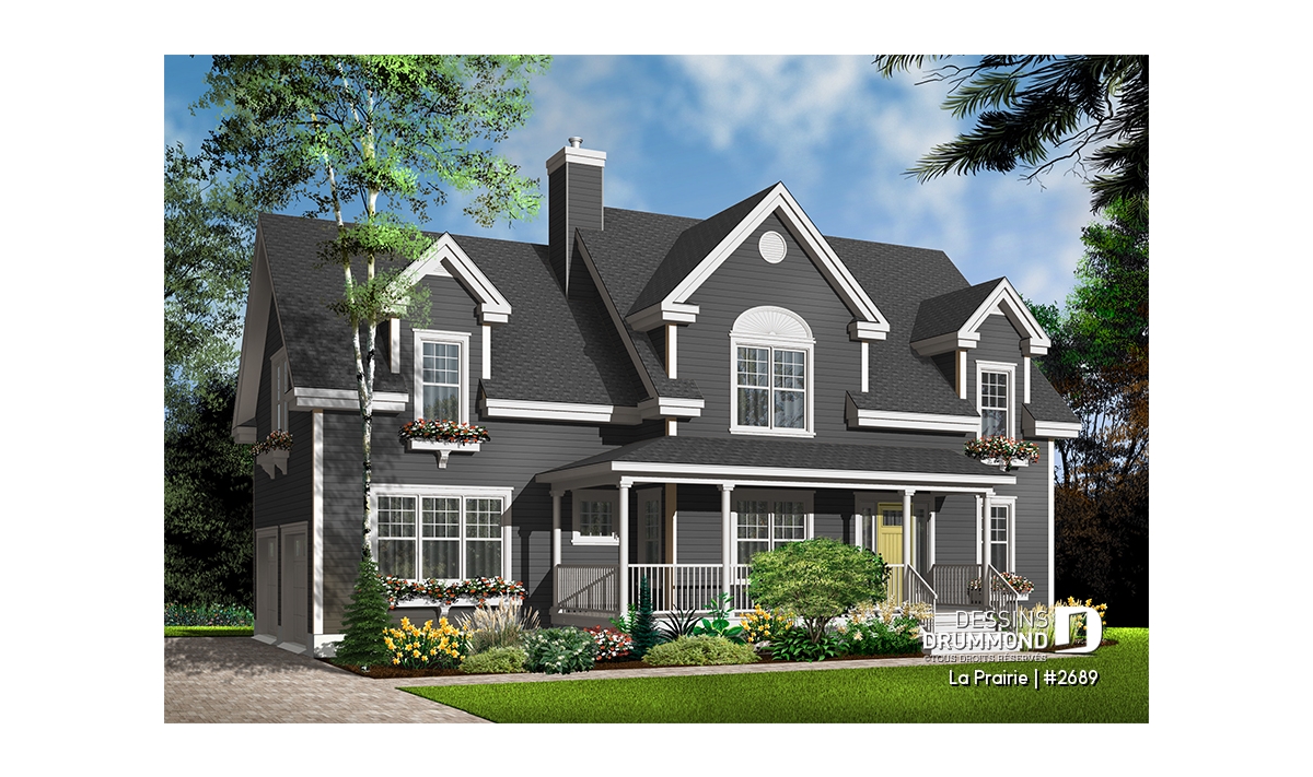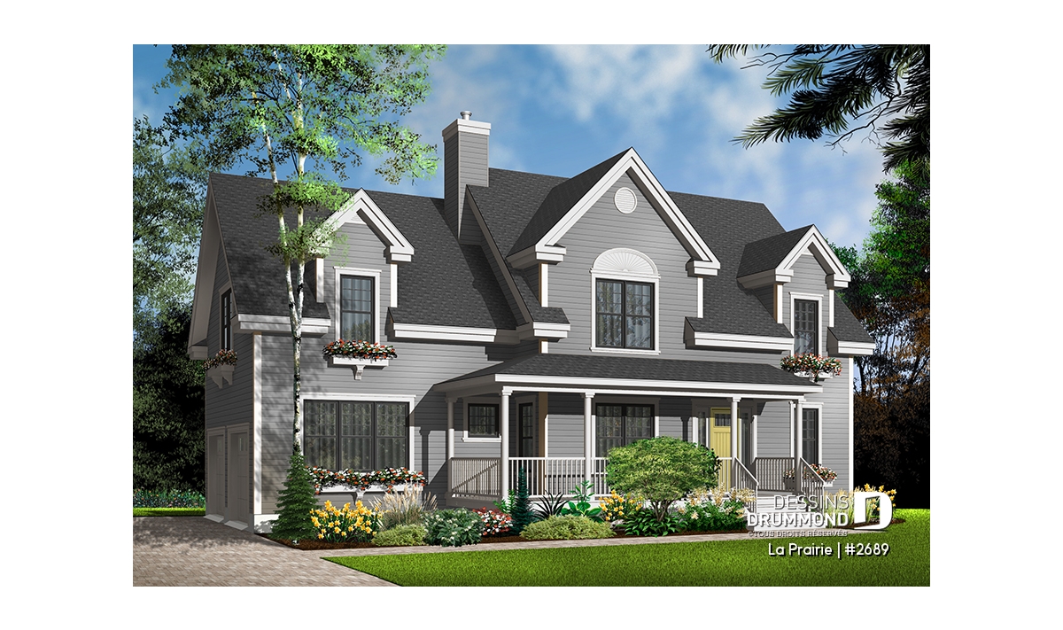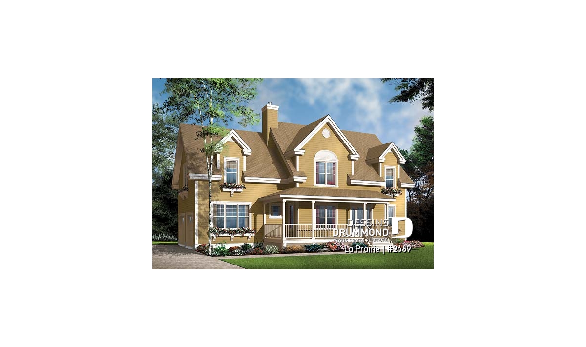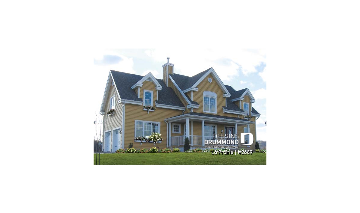 Conçu à partir du très populaire modèle 2590 que vous êtes en mesure de voir sur le site dessinsdrummond.com, ce modèle-ci se veut encore plus logeable avec cet ajout de garage double au-dessus du quel un espace boni remarquable viendra assurément combler les besoins en espace que ce soit pour une vaste salle familiale, pour l’aménagement d’une table de billard ou encore pour un cinéma-maison, ce n’est certes pas cet espace qui causera problèmes.